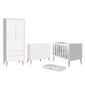 Dormitório Completo Infantil Theo 2 Portas, Cômoda 6 Gavetas, Berço Com Pés Madeira Natural e Colchão D18 - Reller Móveis