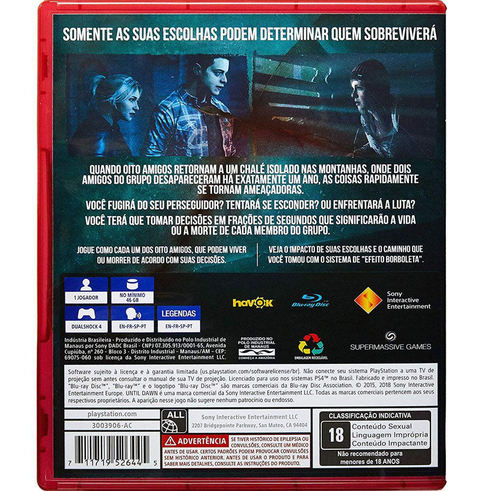 conteúdo Da Embalagem: 1 - Until Dawn Hits - Playstation 4