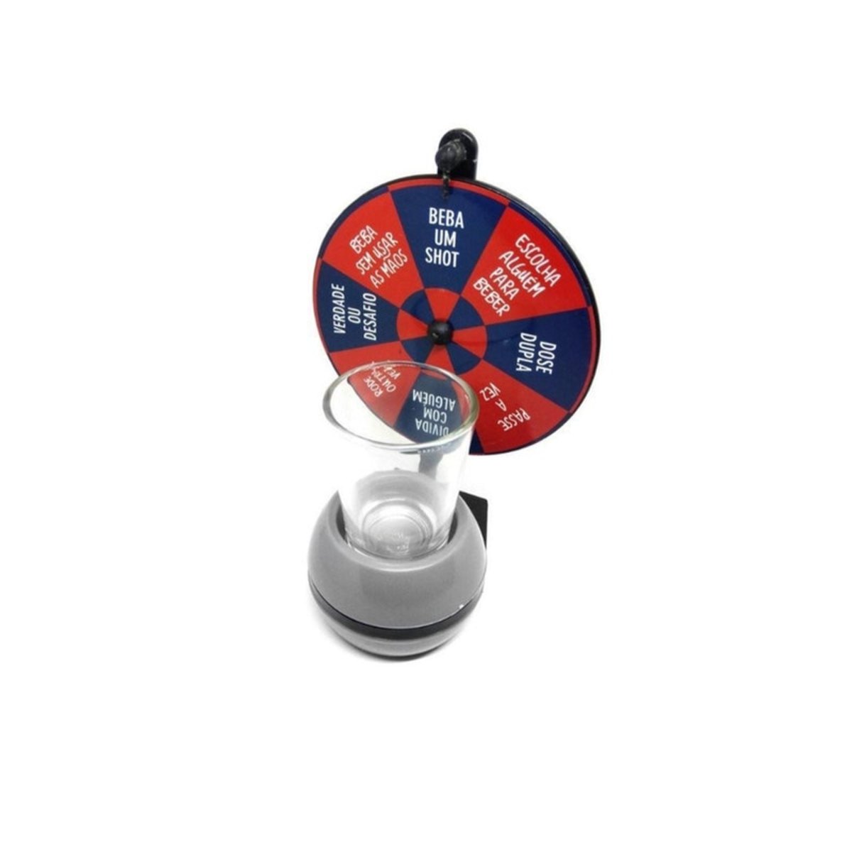 Drinking game .Jogo vira -vira roleta..Chame os amigo para esse divertido jogo..1 reúna os jogadores .2 gire a roleta e espere ate ela parar .3 siga a instrução sorteada..Contem 1 base com roleta de plástico e 1 copo de vidro 50ml