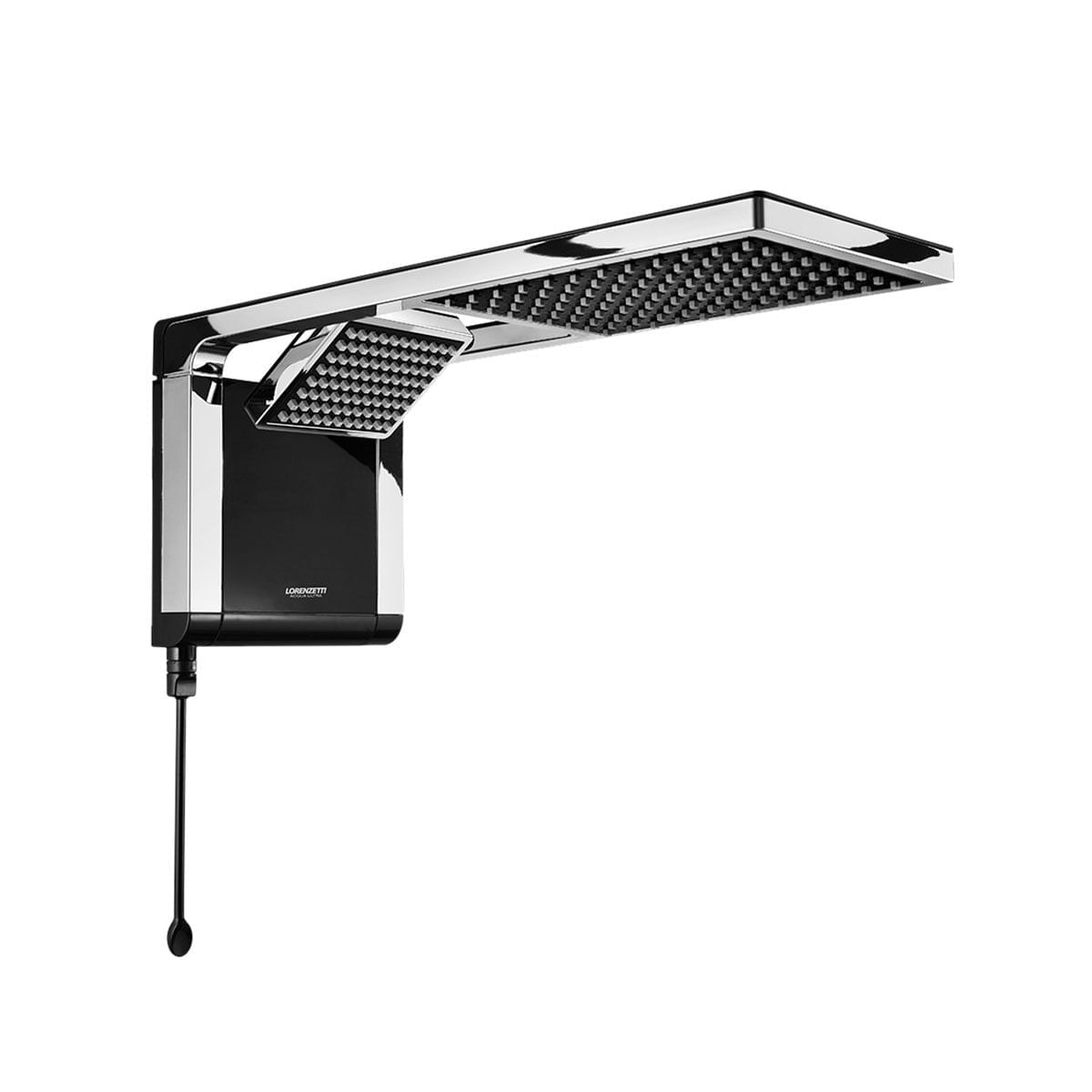 Ducha Acqua Duo Ultra Preta/Cromada Lorenzetti - 127v..Ducha e Chuveiro em um Único Produto...E para dar continuidade ao grande sucesso da Linha Acqua Ultra, a Lorenzetti surpreende mais uma vez com um produto sofisticado que possui acabamento moderno com linhas quadradas, design compacto, ¿Similar ao design de duchas Frias¿ e que integra ducha e chuveiro em um único produto. ..Na opção de banho com ducha, o jato é direcionável e concentrado, inclinando-se na direção desejada, enquanto o chuveiro proporciona um jato mais espaçado, por meio de um espalhador de grande proporção. ..A Linha Acqua Ultra conta com a exclusiva Resistência Loren Ultra, a primeira resistência plana do mercado. Trata-se de um desenvolvimento com mais de cinco anos de estudos, que garante alta performance e longa duração....Características Gerais do Produto:.. ¿ Compatível com DR (Dispositivo Diferencial Residual): Sim. ¿ Compatível com Sistemas de Aquecimento (Solar, Gás...): Sim. ¿ Dimensões AxLxP (mm): 228x210x520. ¿ Disjuntor (A): 40A (220V), 50A (127V). ¿ Fios (mm2): 10mm (127V), 6mm (220V). ¿ Garantia: 1 ano junto ao fabricante. ¿ Material: Plástico. ¿ Cor: Preto/Cromado. ¿ Potência: 5500W (127V), 7800W (220V). ¿ Pressão de Funcionamento: 10 a 400kPa (1 a 40mca). ¿ Grau de Proteção: IP 24. ¿ Sistema de Aterramento: Sim. ¿ Comando Eletrônico de Temperaturas: Sim. ¿ Chuveiros - Local de Uso: Parede. .Acompanha o produto:.. ¿ 1 Ducha Eletrônica Acqua Duo Ultra.1 Haste de Comando.1 Mangueira com Ducha Manual.1 Manual de Instalação.1 Redutor de Pressão