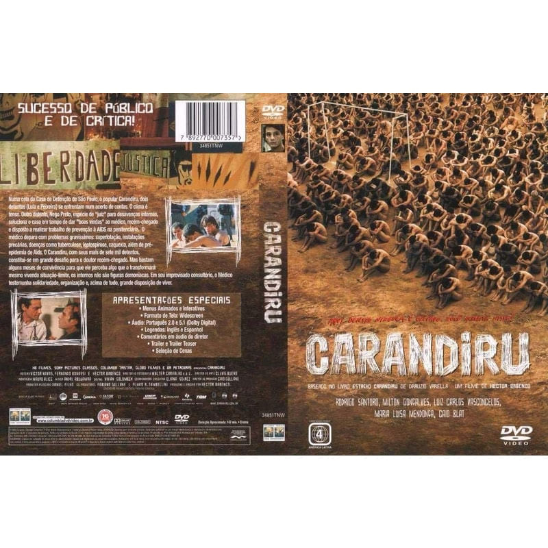 DVD Carandiru - Duplo (DVD). (carandiru). Sinopse:. Carandiru é a adaptação cinematográfica do livro Estação Carandiru de Dráuzio Varella. Trata-se de um retrato poderoso da diversidade humana narrado através do ponto de vista de um médico que freqüentou a Casa de Detenção semanalmente ao longo de 12 anos consecutivos e testemunhou o fatídico massacre de 1992. O alinhavo das histórias do médico, narradas ao longo do exercício de suas funções no Presídio, e que ocupam mais da metade do tempo do filme, criarão um painel cômico, cruel e às vezes de uma grandiosidade humana que levará o espectador a territórios emocionais muito distantes das crônicas de medo e violência que impregnam nossas ruas e a imprensa brasileira.. Gênerocinema Nacional. Direçãohector Babenco. Atoresluiz Carlos Vasconcelos. Milton Gonçalves. Ivan de Almeida. Ailton Graça. Maria Luísa Mendonça. Aida Leiner. Rodrigo Santoro. Gero Camilo. Lázaro Ramos. Caio Blat. Wagner Moura. Júlia Ianina. Sabrina Greve. Floriano Peixoto. Ricardo Blat. Vanessa Gerbelli. Leona Cavalli. Milhem Cortaz. Dionísio Neto. Antônio Grassi. Enrique Díaz. Robson Nunes. André Ceccato. Bukassa Kabengele. Sabotage. Maurício Marques. Rita Cadillac. Gabriel Braga Nunes. Walter Breda. Ângela Correa. José de Paiva. Marcelo Escorel. Sérgio Loroza. Nelson Machado. Oscar Magrini. Nill Marcondes. Luis Miranda. Marcelo Palmares. Luciano Quirino. Sílvio Roberto. Régis Santos. Dráuzio Varella. . Idiomaportuguês,. Legendasportuguês, Inglês, Espanhol,. Ano de produção 2003. País de produçãoBrasil, Argentina, Italia,. Duração 147 min.. Distribuiçãosony Pictures. Região América Latina, Austrália e Nova Zelândia. Áudiooriginal - Português. Vídeonão Informado. Corcolorido
