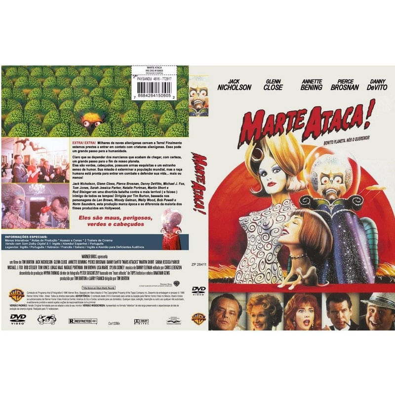 Sinopse:. . EXTRA EXTRA Milhares de naves alienígenas cercam a Terra Finalmente estamos prestes a entrar em contato com criaturas alienígenas. Esse pode ser um grande passo para a humanidade. . Claro que se depender dos marcianos que acabam de chegar, esse será com certeza, um grande passo para o fim do nosso planeta.. Eles são verdes, cabeçudos, possuem armas esquisitas e um estranho senso de humor. Sua missão é exterminar a população mundial, mas a raça humana está pronta para entrar em combate e defender sua vida... Mais ou menos. Jack Nicholson, Glenn Close, Pierce Brosnan, Danny DeVito, Michael J. Fox, Tom Jones, Sarah Jessica Parker, Natalie Portman, Martin Short e Rod Steiger em uma divertida batalha contra os mais terríveis (e feiosos) inimigos de todos os tempos. . . . . Título Original: Mars Attacks. Gênero: Comédia. Distribuição: Warner Home Video. Ano de Produção: 1996. Ano de Lançamento: 2012. Quantidade de Discos: 1 DVD. Direção: Tim Burton. Elenco: Jack Nicholson, Glenn Close, Annette Bening, Pierce Brosnan, Danny DeVito, Martin Short, Sarah Jessica Parker, Michael J. Fox, Rod Steiger, Tom Jones, Jim Brown, Lukas Haas, Natalie Portman, Pam Grier, Lisa Marie, Brian Haley, Sylvia Sidney, Jack Black, Ray J, Paul Winfield, Brandon Hammond, Jerzy Skolimowski, Janice Rivera, Rance Howard, Richard Assad, O-Lan Jones, Christina Applegate, Joe Don Baker, Timi Prulhiere, Barbet Schroeder, Chi Hoang Cai, Tommy Bush, Joseph Maher, Gloria M. Malgarini, Betty Bunch, Gloria Hoffmann, Willie Garson, John Roselius, Michael Reilly Burke, Vinny Argiro, Valerie Wildman, Richard Irving, Jonathan Emerson, Tamara Gingir Curry, Rebecca Broussard, Steve Valentine, Coco Leigh, Don Lamoth, Jeffrey King, Enrique Castillo, C. Wayne Owens, Joseph Patrick Moynihan, Roger Peterson, John Finnegan, Ed Lambert, John Gray, Gregg Daniel, J. Kenneth Campbell, Jeanne Mori, Velletta Carlson, Kevin Mangan, Rebeca Silva, Josh Phillip Weinstein, Julian Barnes, Ken Thomas, Darelle Porter Holden, Christi Black, Sharon Hendrix, Jim Beatty, John Bradley, Colleen Ann Brah, Greg Bronson, Maria Celeste Genitempo, Geri Gilmore, Matthew James Gulbranson, Roger Jackson, Walter Ludwig, Scott McKinley, Bob Pepper, Kelly Lynn Richards, David Sherrill, William Victor Skrabanek, Alexandra Smothers, Jay So, Edward Tubbs, Carl Washington.. Idioma e Sistema de Som do Filme: Inglês Dolby Digital 5.1 e Espanhol Dolby Surround 2.0. Legendas do Filme: Português, Inglês e Espanhol. Formato de Tela do Filme: 16x9 Widescreen Anamórfico. País de Produção: Estados Unidos da América. Duração: 106 Min. Aprox.. Região: 4 (América Latina). Cor: Colorido. Código de Barras: 7892110015226. Extras: Trilha Sonora Isolada, Trailers. Classificação: 14 Anos