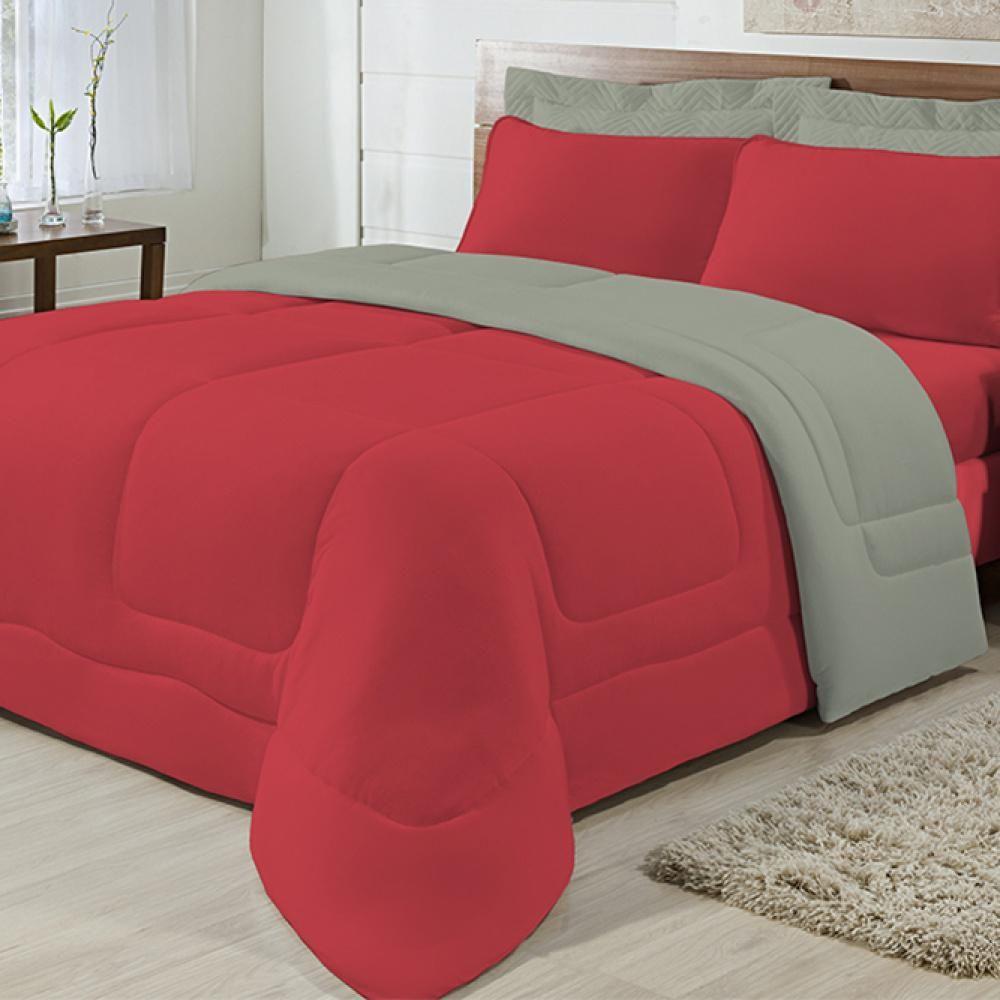 Edredom Casal 100% Algodão em Malha Fio 30/1 Dupla Face Kit 04 Peças Vermelho com CinzaO edredom é um produto muito utilizado em noites frias, e você pode encontrá-lo em vários tipos de tecido. Mas o edredom casal padrão e o jogo de cama casal padrão 03 peças em tecido malha fio 30/1 100% Algodão tem uma particularidade, além de ser muito macio, no frio ele é muito aconchegante e quente e no calor ele tem aquele toque geladinho no tecido. Ele tem um acabamento muito bom, e como o tecido é de ótima qualidade, esse é um produto muito durável.Contém: - 01 Edredom Dupla Face 2,20m x 2,00m- 02 Fronhas Vermelhas 70cm x 50cm- 01 Lençol de Baixo com Elástico Vermelho para Colchão de 1,88m x 1,38m x 30cmMaterial: - Tecido Superior: 100% Algodão - Malha Fio 30/1, Enchimento: 100% Poliéster, - Tecido Inferior: 100% Algodão- Malha Fio 30/1.Especificações Técnicas:- Marca: Enxovais Davy- Indicado para: Quarto- Cor Predominante: Vermelho- Dimensão do Produto: Cama Casal 2,20m x 2,00m. - Garantia: 3 meses