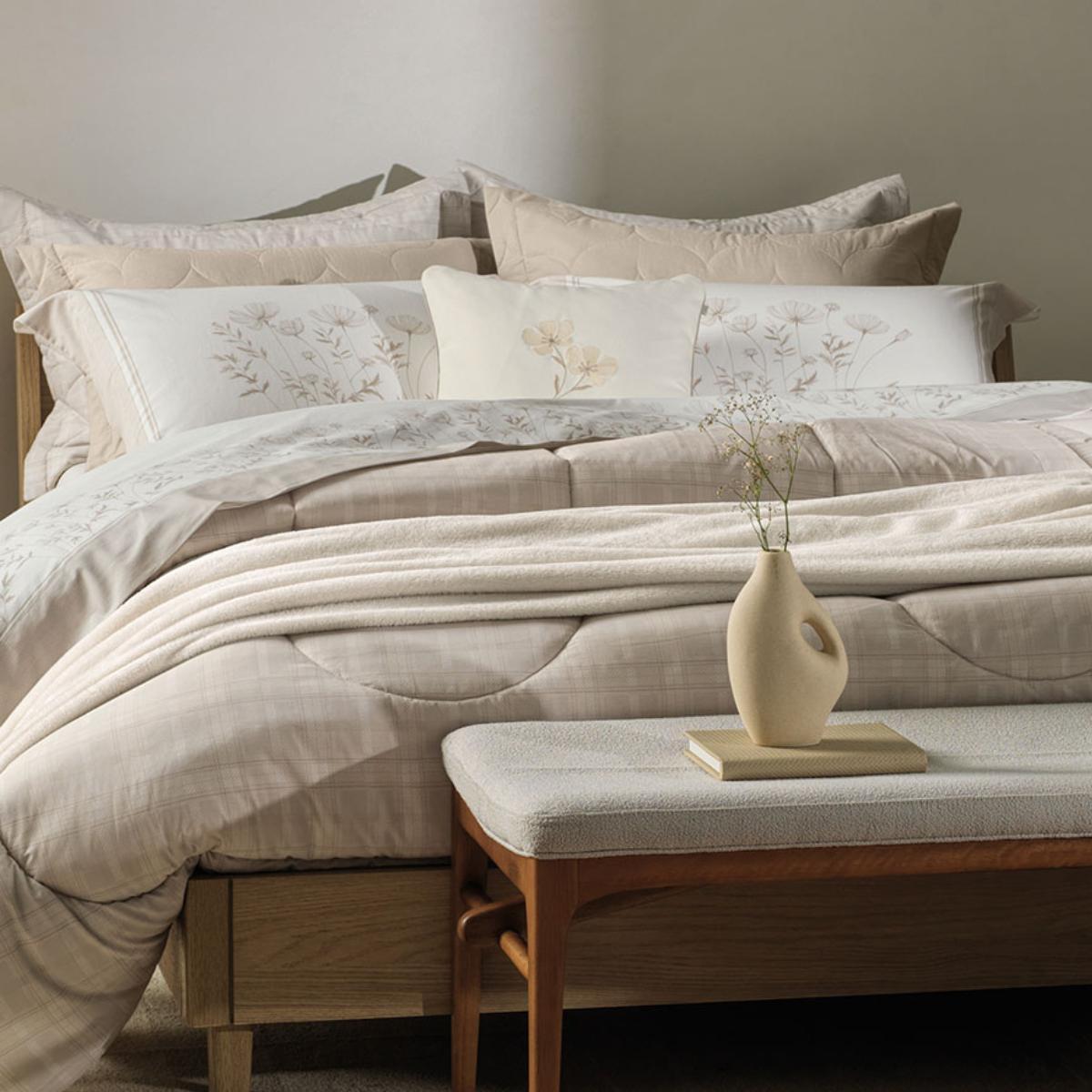 Descrição: O Edredom Mabel, Da Karsten, É Confeccionado Em Percal 200 Fios 100% Algodão, Oferecendo Toque Macio, Conforto Térmico E Excelente Qualidade. Com Estampa Xadrez Delicada Em Tom Bege Claro, Traz Um Visual Sofisticado E Neutro, Perfeito Para Composições Clássicas E Acolhedoras. Seu Enchimento Macio E Acabamento Matelassado Garantem Aconchego E Caimento Impecável.