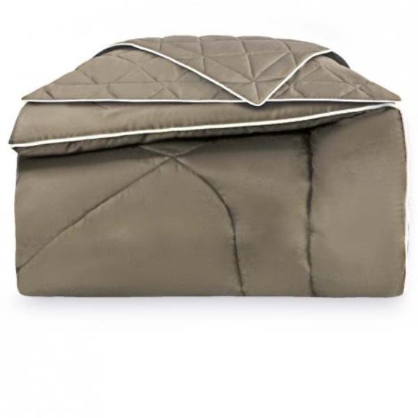 Produzido em tecido matelado 100% algodão, 300 fios e enchimento 100% poliéster. Um toque de conforto e sofisticação que o seu quarto merece. O modelo possui acabamento rolotê nas bordas do porta-travesseiro e na parte superior do edredom. Por ser liso, é perfeito para coordenar com diversos jogos de cama. Porta-travesseiro acompanha o edredom. Ótima opção para quem busca qualidade e requinte. Foto meramente ilustrativa.\n\nContém:\n1 edredom 180x240cm\n1 porta-travesseiro 50x70cm\n\nInstruções de lavagem\n- Sobre os bordados passar até 80º,C,\n- Lavar com sabão neutro,\n- Lavar até 60º,C processo suave,\n- Não alvejar ou branquear,\n- Não secar em tambor,\n- Passar até 110º,C,\n- Vapor pode causar danos irreversíveis,\n- Não limpar a seco.\n\n ,\n