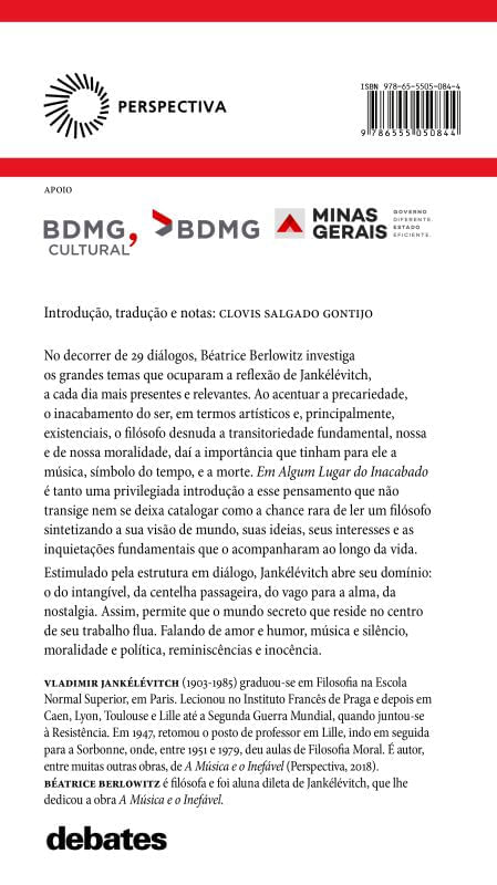 em Se Tratando De Grandes Personalidades Da Cultura, Especialmente Aquelas Com Obras Extensas, Profundas E Com Muitas Ramificações, Um Texto Em Forma De Diálogo, Com Um Mediador Sensível E Conhecedor Da Obra Do Interlocutor, Torna-se Uma Grande Porta Aberta Para Se Compreender Seus Pensamentos E Importância. É Este, Precisamente, O Caso Deste Livro, Que Descortina E Ilumina A Obra De Vladimir Jankélévitch Ao Trazer O Diáfano, O Transitório E O Precário Das Coisas E Dos Homens, Em Sua Filosofia Plena De Música E Poesia, Dirigido Por Béatrice Berlowitz, Discípula Dileta, Ao Que Se Soma Um Estudo Introdutório Ao Pensamento Do Filósofo Pelo Seu Tradutor E Estudioso, Clóvis Gontijo.
