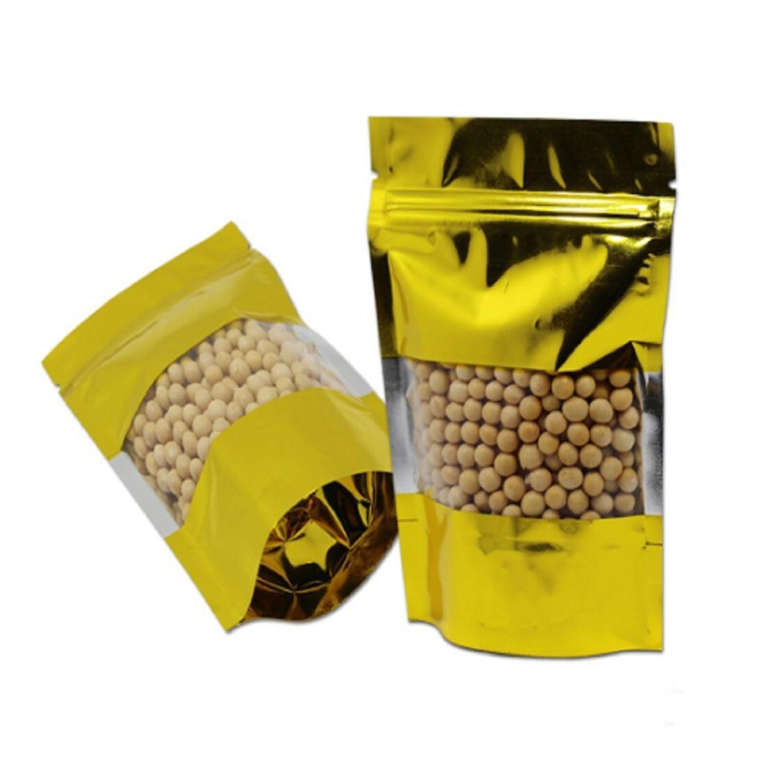 50 Embalagem Com Zip Com Visor 10 X15cm Dourado