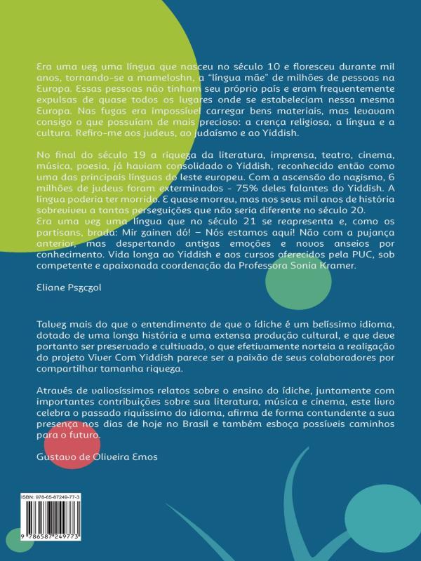 era Uma Vez Uma Li´ngua Que No Se´culo 21 Se Reapresenta E, Como Os Partisans, Brada: Mir Zainen Do´! – No´s Estamos Aqui! Na~o Com A Pujanc¸a Anterior, Mas Despertando Antigas Emoc¸o~es E Novos Anseios Por Conhecimento. Vida Longa Ao Yiddish E Aos Cursos Oferecidos Pela Puc, Sob Competente E Apaixonada Coordenac¸a~o Da Professora Sonia Kramer.