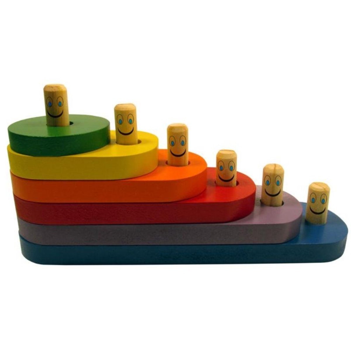 Trabalha a sobreposição das peças, dimensões, coordenação simples, raciocínio combinatório, percepção tátil e habilidades funcionais..06 peças coloridas em MDF, a maior medindo 240mm x 65mm x 15mm, com carinhas estampadas nos pinos..Idade: a partir de 18 meses...Inmetro: OCP0046
