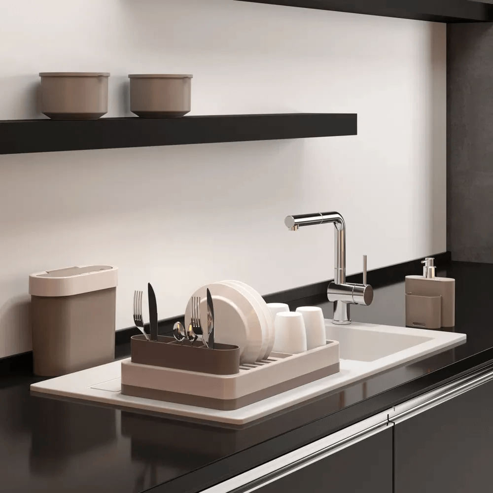 - ,as Peças Compactas Em Mono E Duo Color, Fabricadas Em Polipropileno 100% Reciclável, Proporcionam Espaço Para Escorrer 6 Pratos, Copos E Talheres, Mantendo Tudo Em Ordem E A Sua Cozinha Ainda Mais Moderna