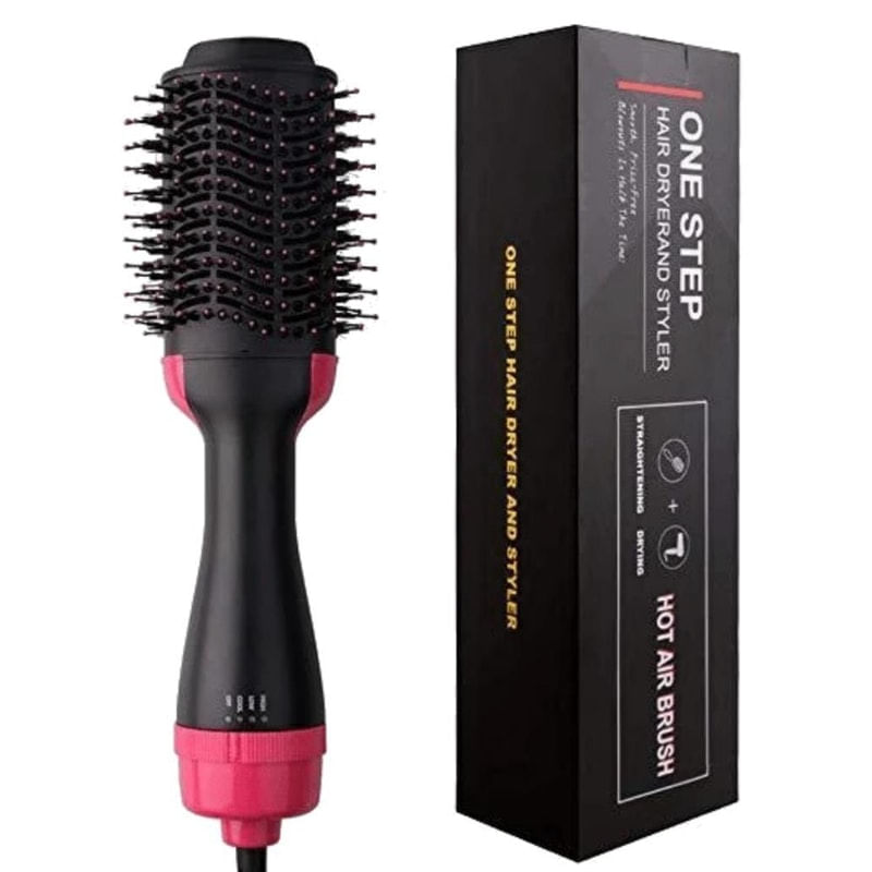 Escova Secadora One Step - Seca, Alisa e Modela..3 em 1: Escova alisadora Profissional e Multifuncional (Modeladora, Alisadora e Secadora)..Tenha em casa um verdadeiro salão de beleza.. 110v..1. Secador multifuncional:Esta escova de ar quente é a combinação perfeita de secador de cabelo, modelador de cabelo, alisador de cabelo, que permite que você para secar, endireitar, enrolar o cabelo apenas em um lado..2. Dupla finalidade: Perfeito para secar bem como os cabelos molhados e todos os tipos de cabelo..3.Tecnologia de íons negativos:Os íons negativos divulgados pelo pente de ar quente pode reduzir os danos e aumentar a umidade do cabelo, também pode eliminar o frizz e realçar o brilho para fazer o cabelo macio e sedoso..4.Superior economizar tempo:1000 W de potência e o maior projeto de ventilação fornecer o direito de calor para uma secagem mais rápida e menos danos, de ar de alta velocidade para salvar o seu tempo, perfeito para o cabelo longo..Especificações:.Cor: Preto + rosa.Tensão/potência: 110V, single tensão nominal, potência 1000 W.Material de aquecimento: fio de Resistência.Número de segmentos: 3 (Baixo, médio, alto).Comprimento do cabo de alimentação: 2 M, rotação de 360 graus.Temperatura: 120 graus Celsius.Peso líquido: 600g.Registro INMETRO OCP 0040