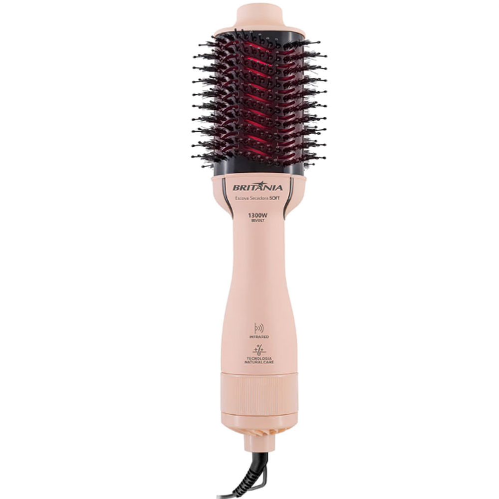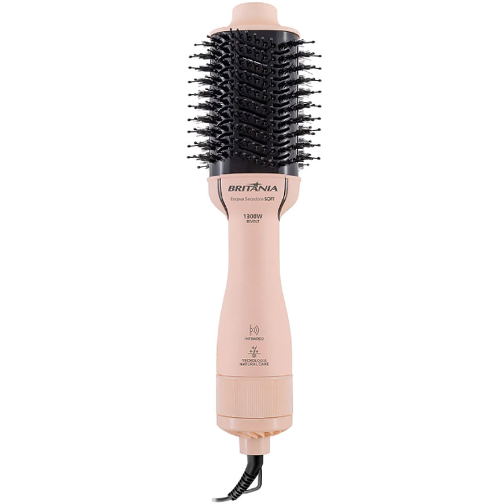 Com Cerdas Macias E Cerdas De Nylon Que Não Agridem Os Fios E Proporcionam Mais Brilho. Ela É Perfeita Para Levar Em Qualquer Lugar, Maior Potência Em Um Único Produto. A Escova Secadora Soft Britânia Bec07 Tem Ìon Tourmaline. Os Íon Negativos Eliminam A Estática Gerando Maciez E Eliminando O Frizz, Mantendo A Umidade Natural Dos Fios, É Perfeita Para Todos Os Tipos De Cabelos. Com Revestimento Em Cerâmica Possibilita Maior Alcance De Altas Temperaturas E Muito Mais Rápida, Conta Com Melhor Abertura Para A Passagem De Calor, Proporcionando Uma Secagem Bastante Eficaz. Ela É 3 Em 1 Pois Alisa, Seca E Modela. Tem Luz Infrared A Tecnologia Que Evita Danos Aos Fios, Ressecamento Excessivo, Antifrizz E Sela As Cutículas Capilares Características Gerais: - Tecnologia Natural Care: Cerdas Macias E Cerdas De Nylon Que Não Agridem Os Fios E Proporcionam Mais Brilho. - 3 Em 1: Alisa, Modela E Seca - Aberturas De Ventilação - Ìon Tourmaline - 3 Temperaturas - 2 Velocidades - Cordão Giratório - Cordão Elétrico Com 1,80m - Revestimento Em Cerâmica Tipo: Escova Rotativa Tipo De Tomada: 10a (4mm) Tipo De Plugue: 2 Pinos Lâmpada Piloto: Não Emite Íons: Sim Função Secador: Sim Visor Lcd: Não Fio Giratório: Sim Potência (w): 1300 Comprimento Do Fio: 1,8 M Consumo (kw/h): 1,3 Conteúdo Da Embalagem: - 1 Escova Secadora Soft Britânia Bec07 Garantia: 12 Meses