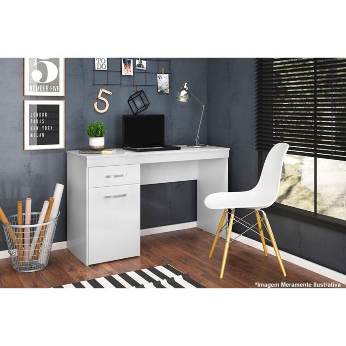 Escrivaninha Demóbile Vitória c/ 1 Porta e 1 Gaveta - Branco Marca: DemóbileDimensões(Cm): Comprimento(Profundidade): 45,00 x Largura: 120,00 x Altura: 76,00 CARACTERÍSTICAS DE MÓVEIS Tipo de Estrutura do Móvel - MDF / MDP Tipo de Pintura - UV (Ultravioleta) - Pintura Texturizada Tipo de Acabamento da Pintura - Pintura Alto Brilho ou Fosca Tipo de puxador - ABS / PVC Quantidade de Gavetas - 1 Gaveta Diferenciais da Gaveta - Corrediças Metálicas Quantidade de Portas - 1 Porta de Abrir Garantia - 3 Meses Não nos responsabilizamos pela montagem/instalação dos produtos. Todas as informações divulgadas são de responsabilidade exclusiva do fabricante/fornecedor. Imagens Meramente Ilustrativas. Verifique com os fabricantes do produto e de seus componentes eventuais limitações à utilização de todos os recursos e funcionalidades.