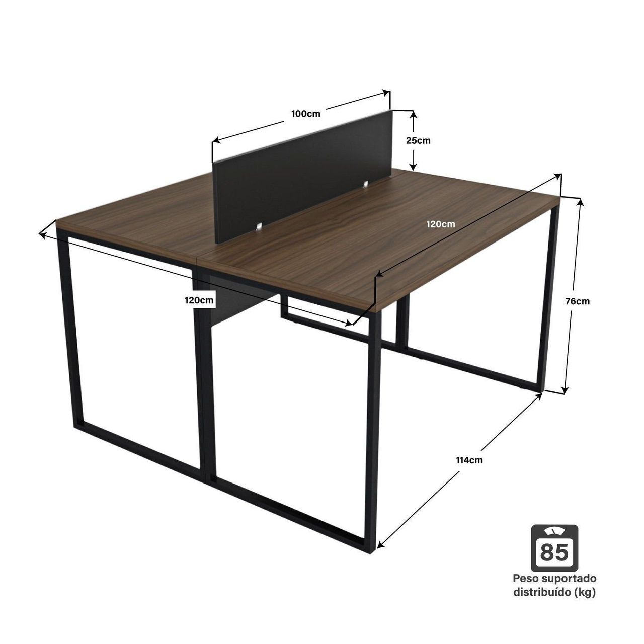 Escrivaninha Mesa Escritório 2 Lugares Industrial Nogal / Preto.