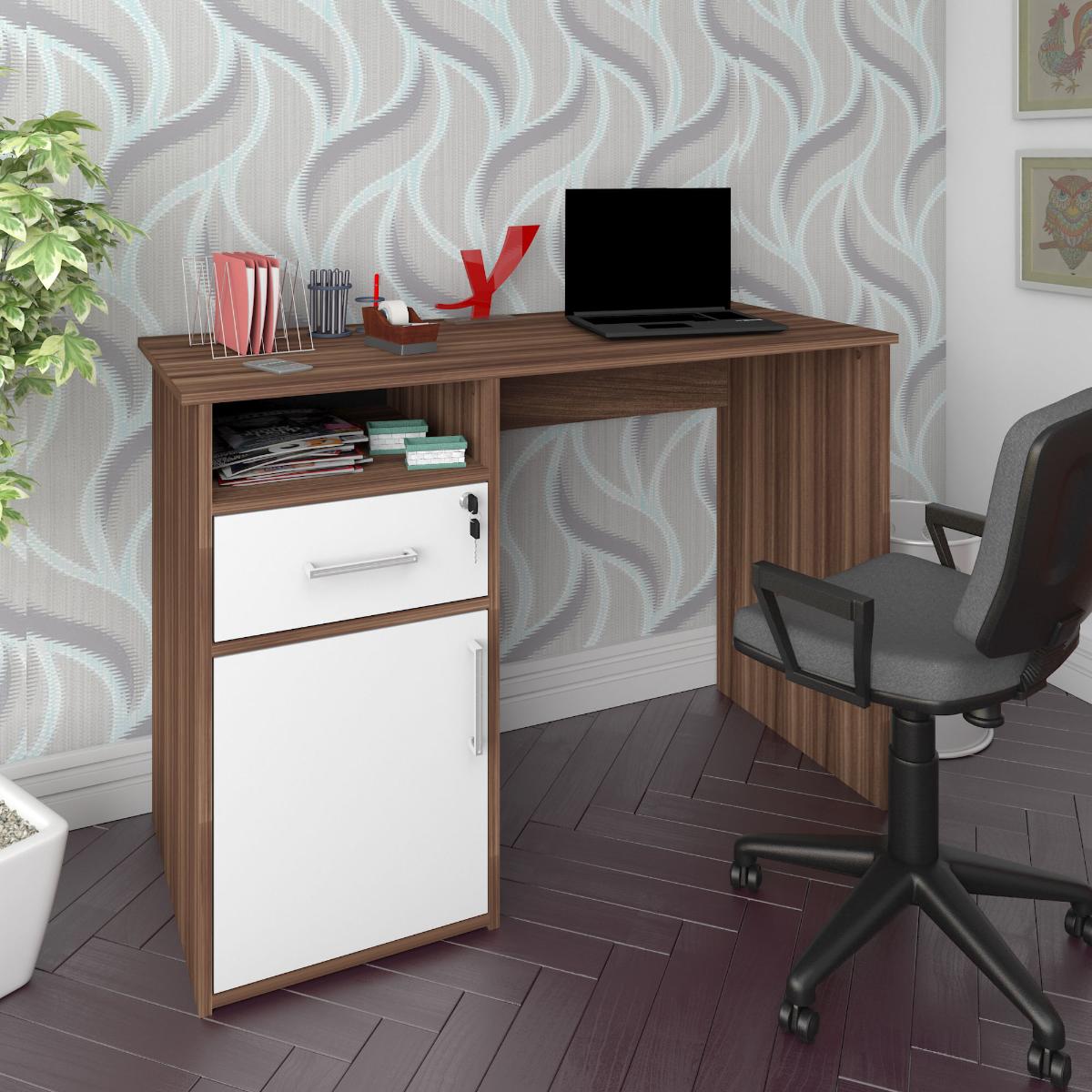 Organize-se para maior produtividade com a Escrivaninha Hall, projetada para conciliar elegância, requinte e conforto. Sua forma versátil faz esta mesa perfeita para ser usada em diversos ambientes com estilos diferentes, como em seu escritório, home office ou quarto, sempre dando um toque especial. A gaveta e a porta garantem um produto útil e multifuncional, além disso, a montagem pode ser feita para o lado esquerdo ou direito, se adequando às suas necessidades e preferências. A gaveta possui uma chave para que você possa guardar documentos, papéis e objetos pessoais com garantia de segurança e conveniência. Trilhos telescópicos certificam uma abertura delicada e uniforme da gaveta. O revestimento de alta qualidade proporciona resistência a impactos, atrito e umidade, certificando uma maior durabilidade ao móvel. O produto perfeito para aumentar o bem estar e a eficiência no trabalho, já que possui o tamanho ideal para maior conforto e produtividade!
