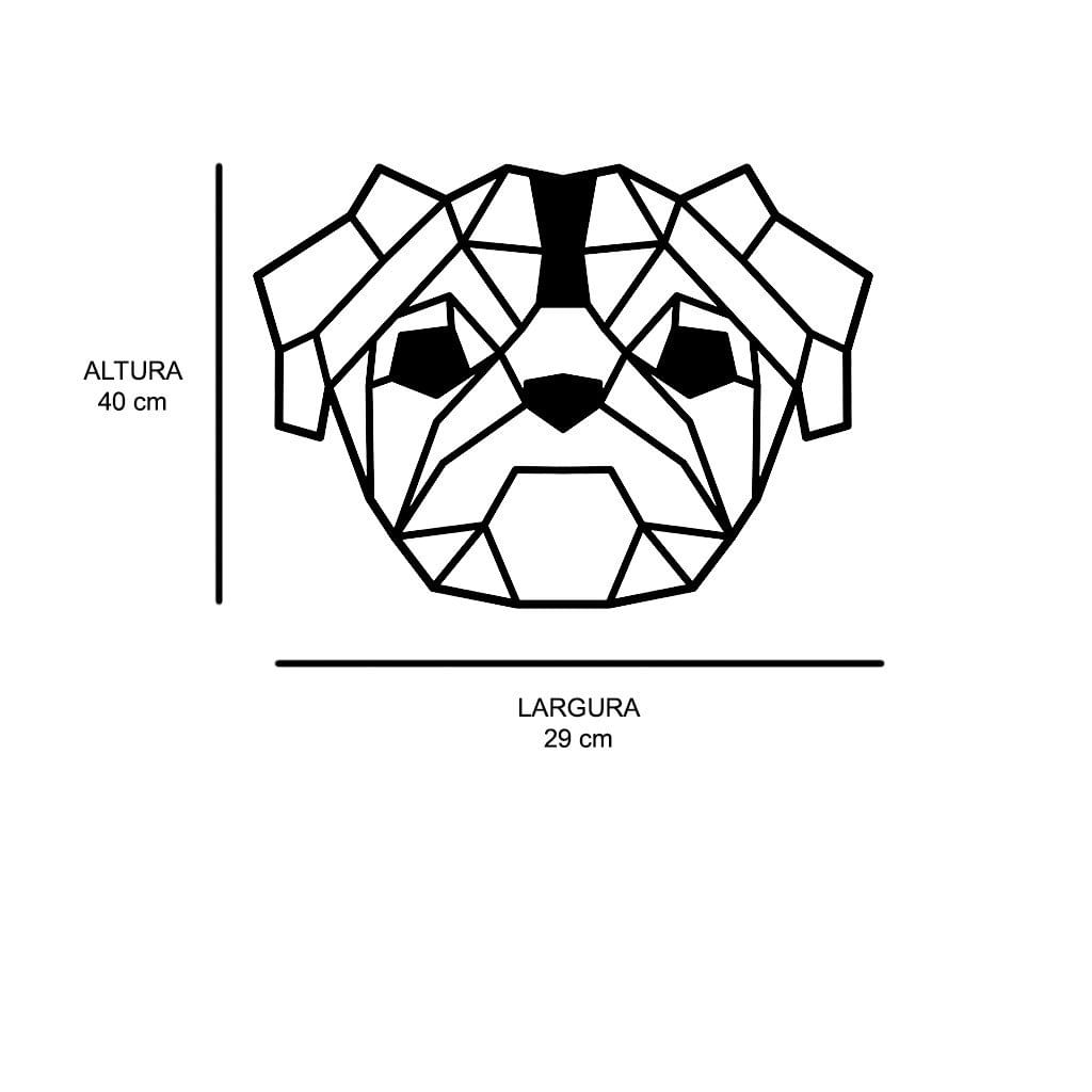 Escultura De Parede Em Mdf Cachorro Pug Geométrico Branco - 40cm X 29cm -
