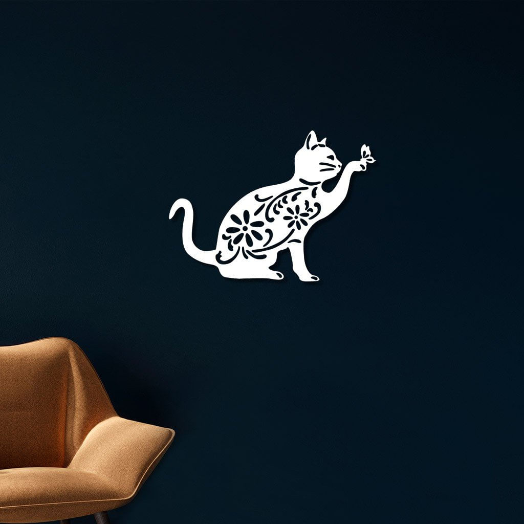 Escultura De Parede Em Mdf Gato Florido