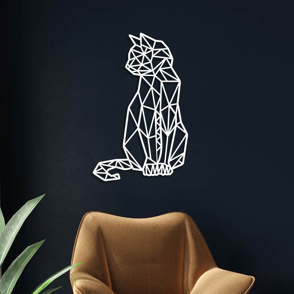 Escultura De Parede Em Mdf Gato Geométrico