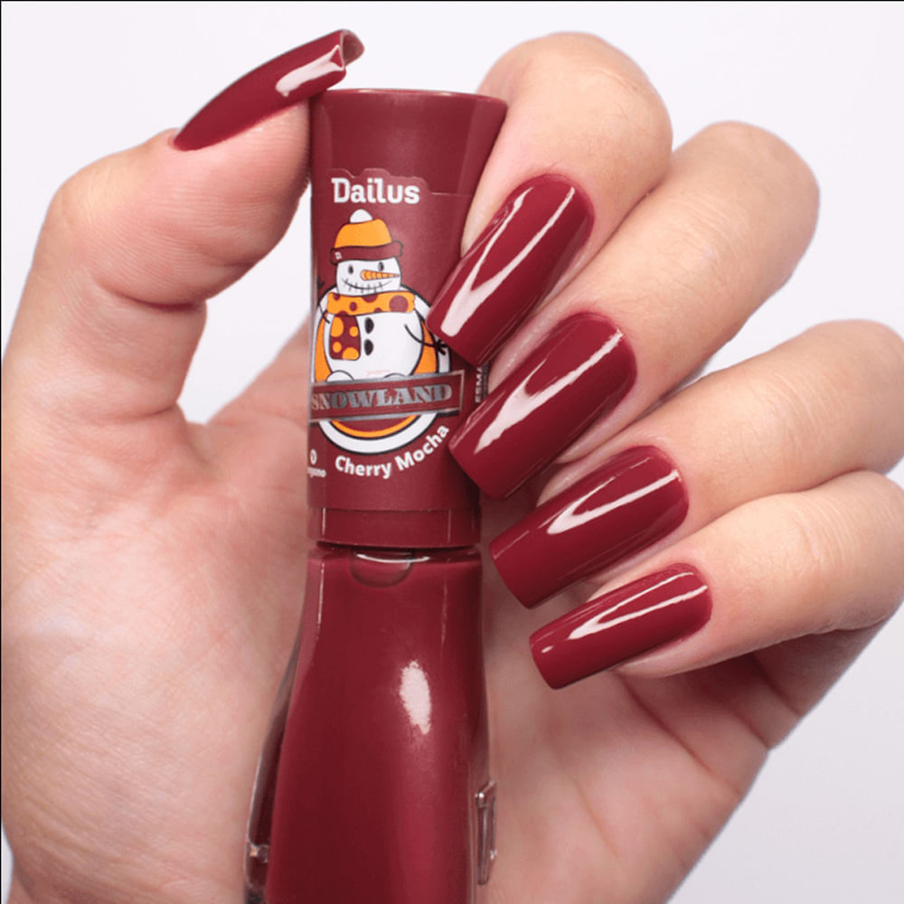 Esmalte Dailus Snow Land - Cherry Mocha Traga A Magia Do Inverno Para Suas Unhas Com O Esmalte Dailus Snow Land Na Deliciosa Cor Cherry Mocha! Este Tom De Vermelho Escuro Com Nuances De Marrom É Ideal