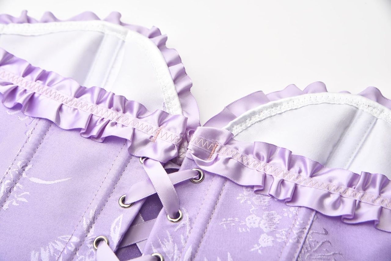 Espartilho Feminino Adelce Com Cadarço, Desossado, Floral, Lavanda