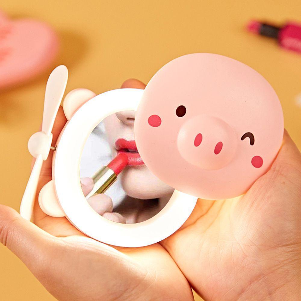 Espelho Maquiagem Led Portátil Porquinho Com Mini Ventiladorespelho Com Luz De Led Branca, Tamanho Compacto, Super Útil Para Qualquer Situação. Possui Ventilador Com Motor Silencioso.pode Ser Usado Nas Mãos Ou Em Mesa.contém:1 Espelho Com Ventilador Porquinho1 Cabo Usbdimensões:altura: 8cmx8cmhélice: 9cmcomprimento Do Cabo: 60cm