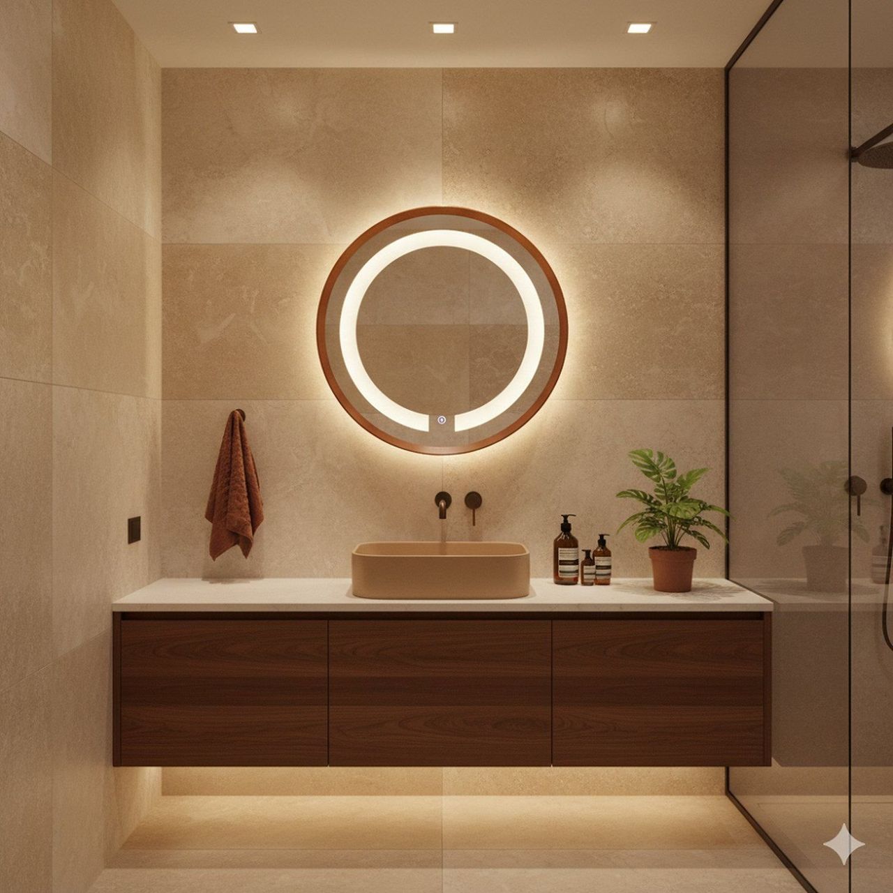 Espelho Redondo Iluminado 40cm Touch 2 Leds Basic Reduna Cobre.