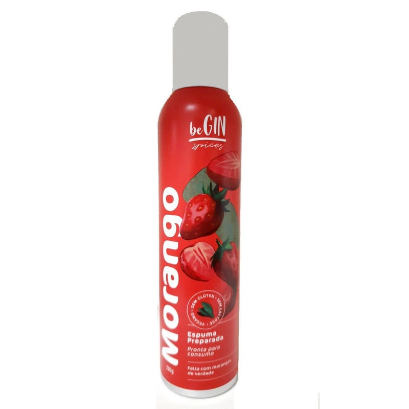 Spray de Espuma Preparada Sabor Morango, pronta para consumo...Feita com morangos de verdade, pela BeGIN Spices...Rende aproximadamente 12 aplicações..Peso: 200g..Ideal para o preparo de:.- Drinks Alcoólicos (Caipirinha, Gin Tônica, Sangria, Clericot, Cosmopolitan).- Drinks Não Alcoólicos (limonadas, água com gás saborizada, soda italiana, chá gelado).- Smoothies e Vitaminas.- Sorvetes e Sobremesas..O mais novo lançamento da BeGIN Spices é:.Sem glúten.Sem lactose.Vegano..Sugestão de aplicação (guia ilustrado na embalagem):.- Mantenha refrigerado para maior consistência..- Para abrir, quebre o lacre inclinando a válvula para frente..- Agite bem antes de usar..- Na posição vertical, pressione a lateral do bico e aplique a quantidade desejada..- Após o uso, levante o bico, lave com água corrente e guarde sob refrigeração...Ingredientes:.Açúcar líquido invertido, água, extrato de morango, aroma idêntico ao natural de morango, acidulante ácido cítrico, espessante goma xantana, monoglícerídeo conservante sorbato de potássio...Validade aproximada: 36 meses. marca:Begin