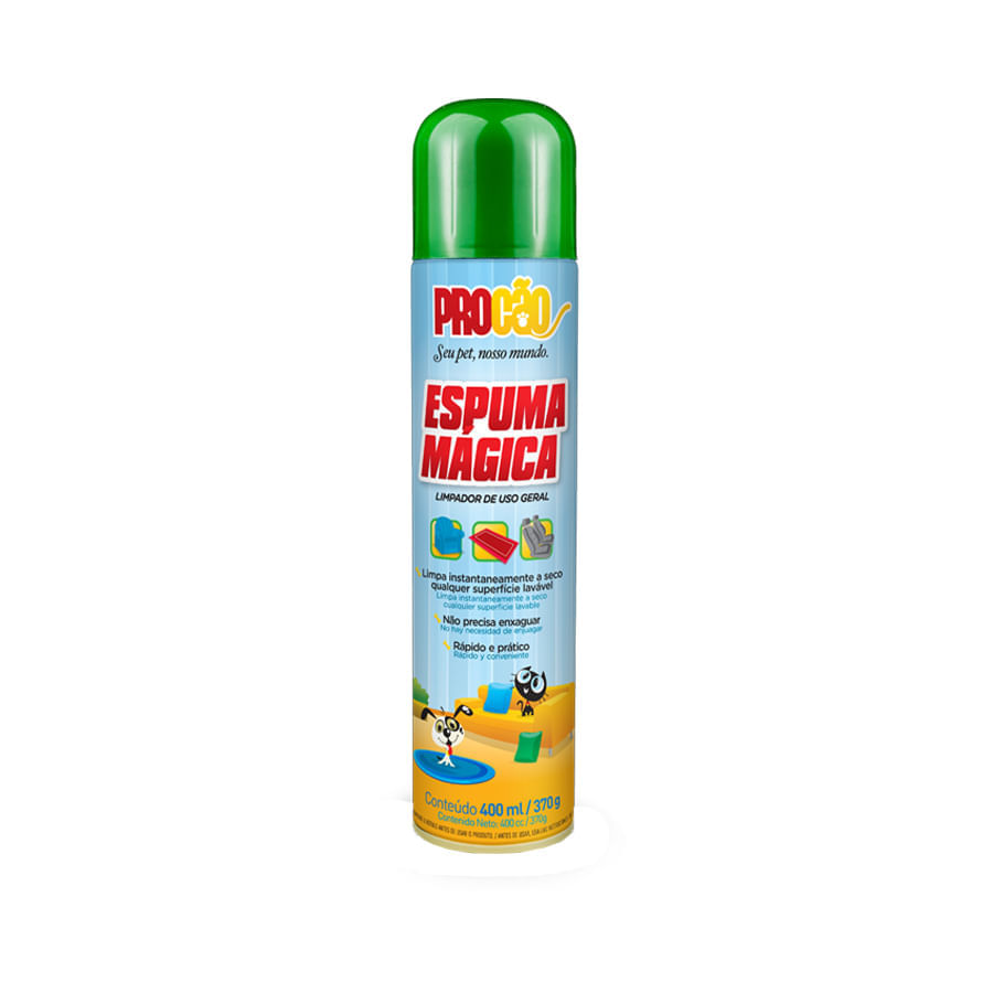 - Indicada para cães e gatos, - Limpa instantaneamente a seco qualquer superfície lavável, - Não precisa enxaguar, - Age super rápido, - Disponível em embalagem com 400ml.