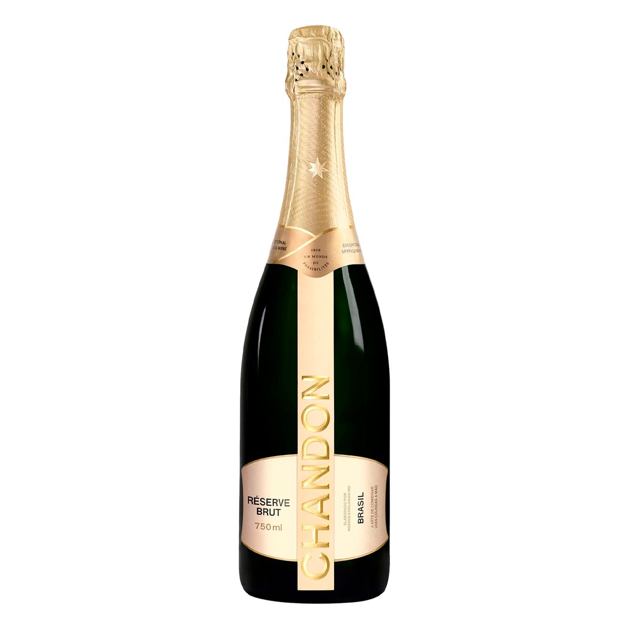 Descrição Do Produto: O Espumante Chandon Réserve Brut 750ml É Uma Escolha Clássica Para Brindar Com Elegância. Frescor Intenso, Perlage Fina E Aromas De Frutas Cítricas E Maçã Verde Se Destacam Na Taça. Versátil Para Comemorações, Harmoniza Muito Bem Com Entradas Leves, Frutos Do Mar, Saladas E Pratos Do Dia A Dia. Sirva Entre 6 E 8 °c Para Aproveitar Todo O Seu Potencial. Características Principais: Perfil Seco E Equilibrado Com Perlage Fina E Persistente Produzido No Brasil Com O Savoir-faire Francês Da Chandon Versátil Para Harmonização E Ideal Para Brindar Em Qualquer Ocasião Características Do Produto: Origem: brasil Graduação Alcoólica: 12% Tipo: branco Brut Uva: pinot Noir, Chardonnay E Riesling Itálico Material: garrafa De Vidro Volume: 750ml Produto Consumível: sim Ingredientes: fermentado Natural De Uvas, Açúcar E Conservante Ins220 (anidrido Sulfuroso). Alérgicos: não Contém Glúten. Contém Sulfitos. Item Da Embalagem: 1 Unidade - Espumante Chandon Réserve Brut 750ml Faq: É Doce Ou Seco? É Um Espumante Brut, Portanto Seco E Equilibrado. Qual A Temperatura Ideal De Serviço? Entre 6 E 8 °c. Resfrie Por Cerca De 2 Horas Na Geladeira Ou 20–30 Minutos Em Balde Com Gelo E Água. Com O Que Harmoniza? Entradas, Canapés, Saladas, Frutos Do Mar, Sushi, Aves E Pratos Leves. Aviso Legal: Beba Com Moderação. Proibida A Venda Para Menores De 18 Anos.
