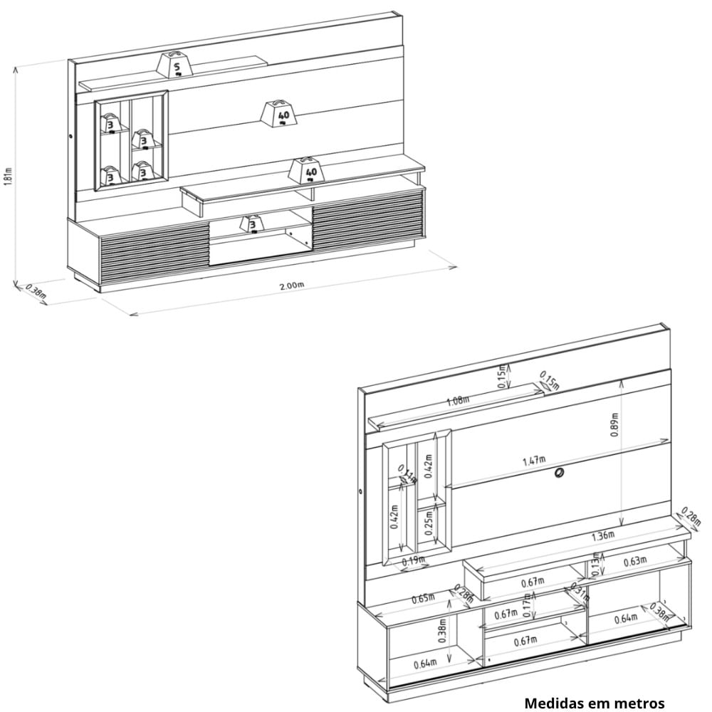 A Estante Home Ripada Para Tv Até 60 Polegadas Com Led E Espelho 2 Portas De Correr Eldorado 2.0 Linea Brasil Combina Design Moderno E Funcionalidade Para Valorizar Sua Sala. Ideal Para Tvs De Até 60 Polegadas, Conta Com Um Painel Com Espaço Útil De 1,46m X 0,86m, Duas Portas De Correr Com Acabamento Ripado Em Mdf De 15mm, Nichos Com Espelhos Decorativos E Luminárias De Led Que Proporcionam Um Toque Sofisticado. A Estrutura É Composta Por Mdp E Mdf, Com Prateleiras De 15mm E 25mm E Um Tampo Robusto De 37mm. Acompanha Pés Plásticos Opcionais Para Montagem Conforme Sua Preferência.