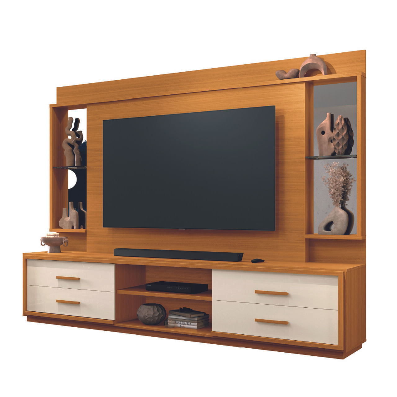 MóveisSalaEstante Home TheaterEstante Home Theater Com Espelho E Vidro Para Tv Até 75 Polegadas 2,40m Leni Edn