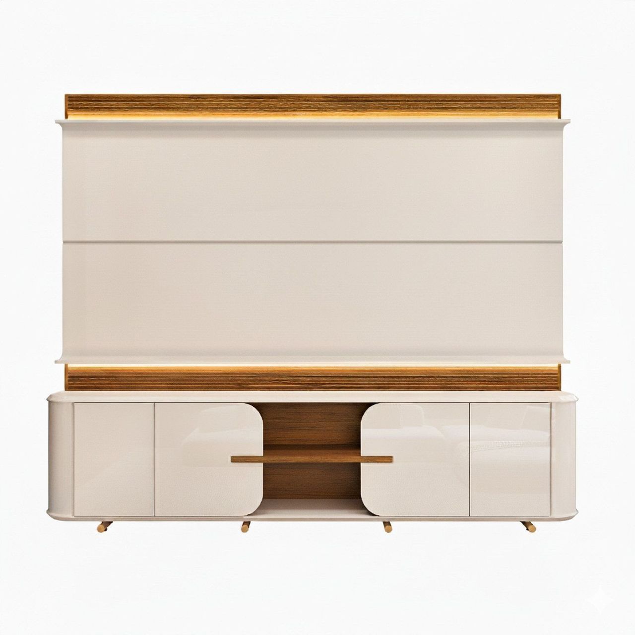 Cantos Curvos E Recorte Usinado, Que Criam Um Visual Fluido E Funcional Ao Emoldurar O Nicho Central. As Portas Laterais, Equipadas