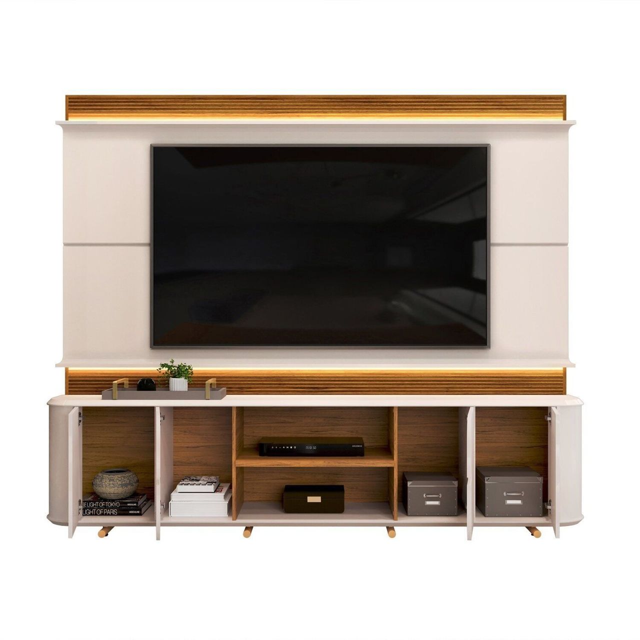 Estante Para Tv Até 75 Polegadas 200cmx240cm Ripado 100% Mdf Com Led Lord Off White/freijó.