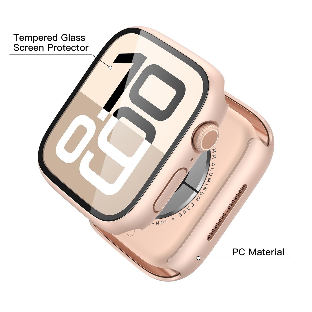 1 Capa Em Ouro Rosa E 1 Transparente Com Protetor De Tela De Vidro Temperado São Projetadas Exclusivamente Para Apple Watch Series 10 De 46 Mm.