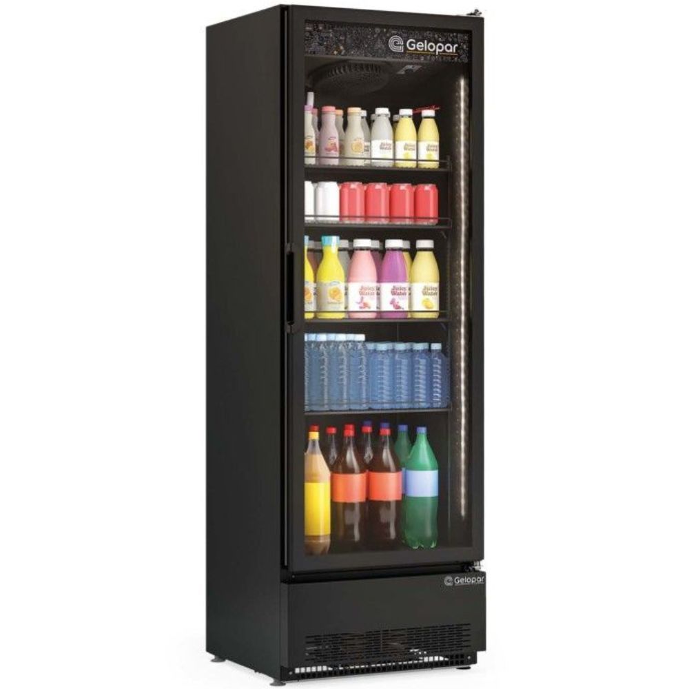 Expositor Vertical 445l Grv45cb Gelopar. Conservação E Exposição De Bebidas, Frios E Laticínios. Temperatura: 0° A +7°c. Refrigeração: Ar Forçado Com Evaporador Aletado. Controlador Eletrônico Com Indicador De Temperatura. Degelo: Manual. Iluminação: Led (interna) Perimetral Vertical, Com Interruptor. Porta: Vidro Duplo Temperado Baixo Emissivo, Com Serigrafia E Perfil Slim. Fechamento Automático. Carenagem Inferior Em Aço Pré-pintado Preto. Prateleiras Aramadas: 4 Níveis Reguláveis E Inclináveis. Revestimento: Interno E Externo Em Aço Pré-pintado Preto. Pés Niveladores. Perfil Porta Etiquetas. Capacidade: 445 Litros. Armazenamento: 432 Latas 350ml, Ou 280 Long Necks 350ml Ou 168 Garrafas Pet 600ml. Consumo: 3,7kwh/dia. Peso: 94kg. Dimensões Externas(cxaxl): 64,5x196,2x64cm. Equipamento Certificado Conforme Portaria Inmetro Nº 371/2009. Freezer Expositor Vertical 445l Grv45cb Gelopar É Na Atau.