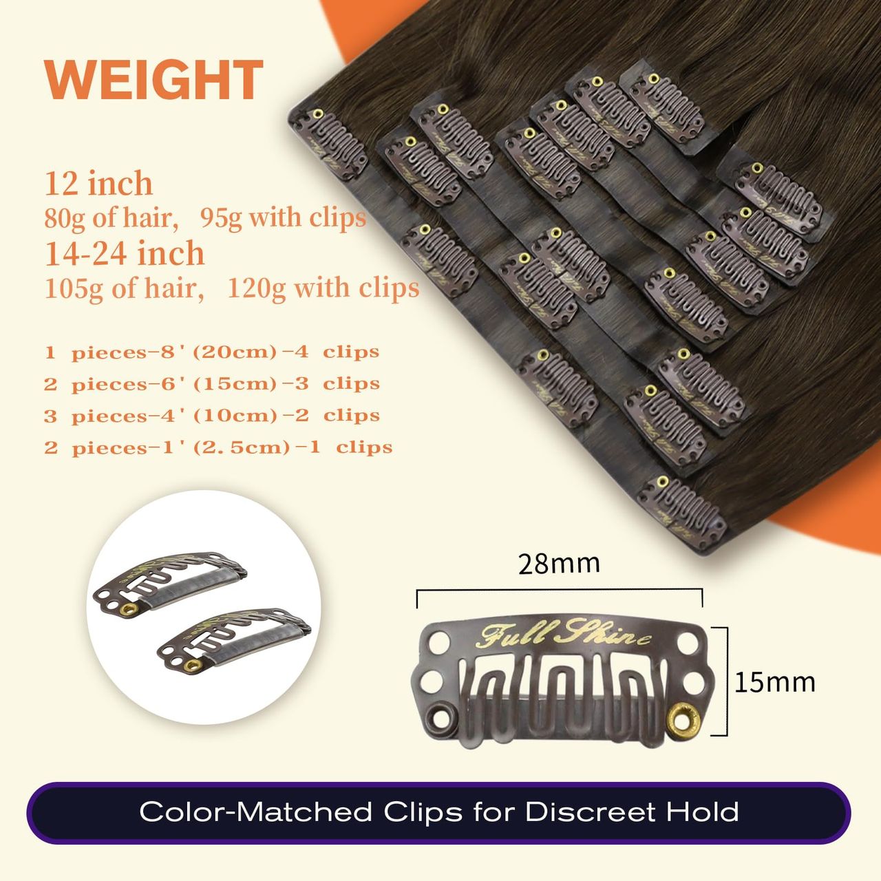 1 Conjunto É Para Volume Normal De Cabelo, E Para Cabelos Grossos, Sugerimos Usar 2 Pacotes Ou Adicionar Um Clipe De 3 Peças Em Extensões.