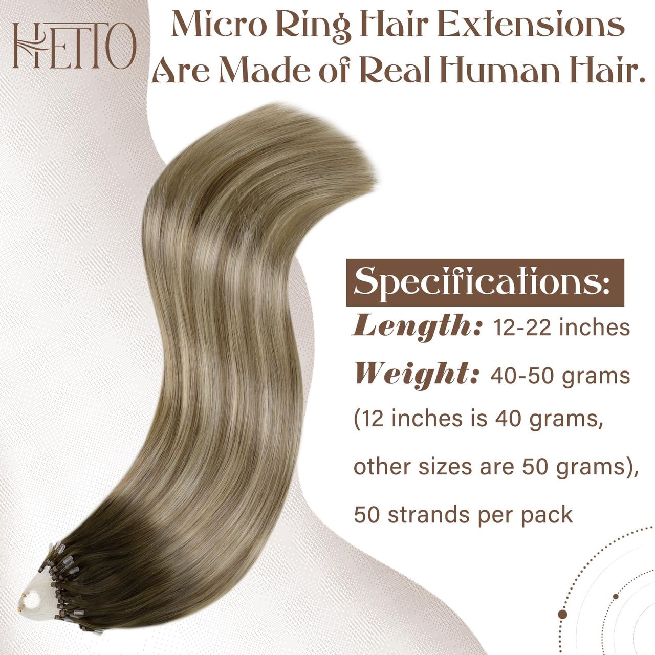 - Especificações Do Produto: Extensões De Cabelo Hetto Micro Ring De 12 A 24 Polegadas, 12 Polegadas: 40 G/pacote, 14-24 Polegadas: 50 G/pacote, O Cabelo Maior Ficará Mais Fino. Normalmente, 1-2 Pacotes Para Adicionar Destaques, 2-3 Pacotes São Suficientes Para Toda A Cabeça. Se Precisar Adicionar Comprimento E Volume, Recomendam-se 3-4 Pacotes (este Produto Não Inclui Alicate. Adquira Essas Ferramentas Separadamente, Se Necessário)
