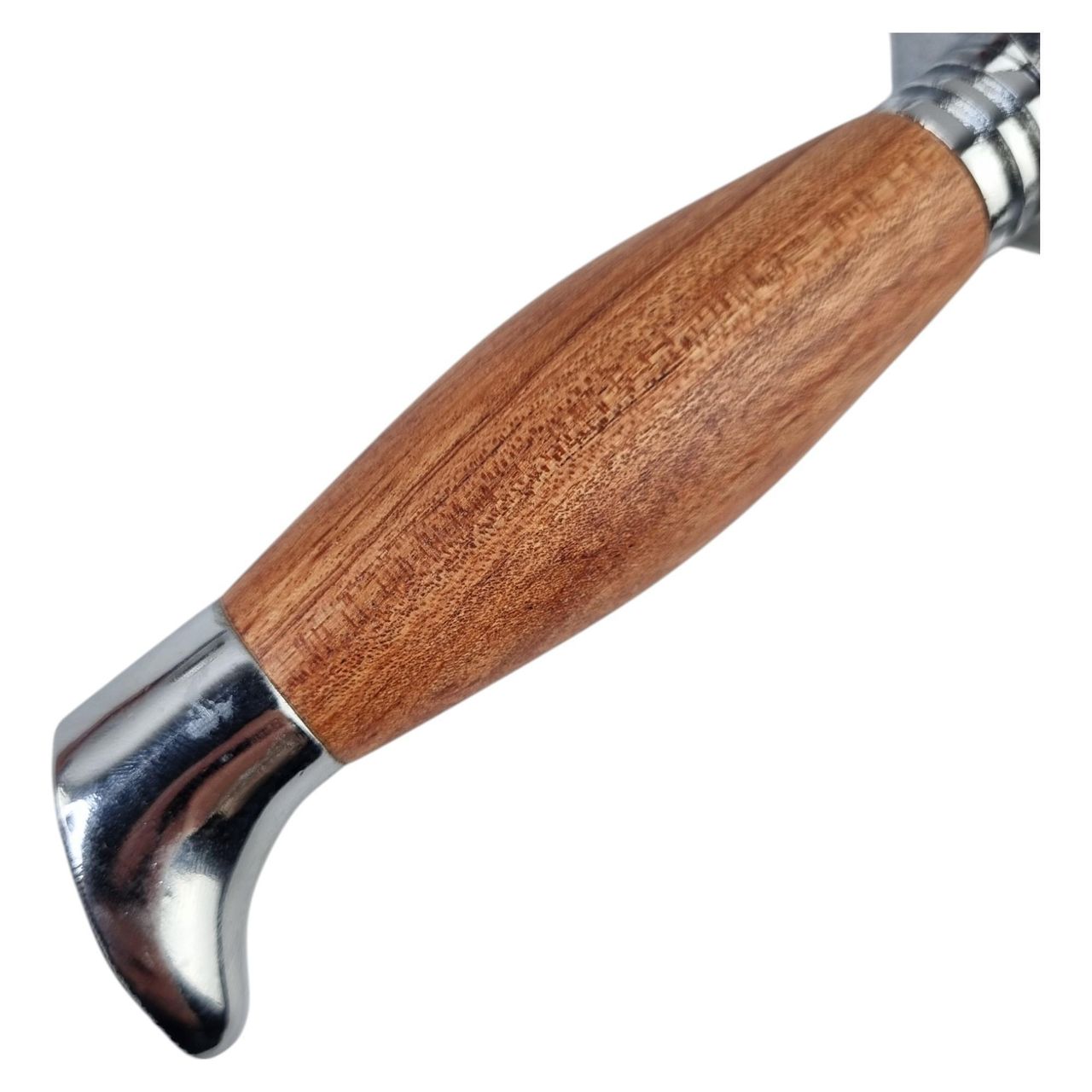 A Faca Dynamis Bowie 4", Marrom Com Bainha, é a escolha ideal para colecionadores e entusiastas da cutelaria. Seu design clássico e robusto combina uma lâmina afiada de aço inoxidável com um cabo ergonômico em madeira, proporcionando firmeza e conforto ao manuseio. Acompanha bainha para armazenamento seguro e transporte prático.