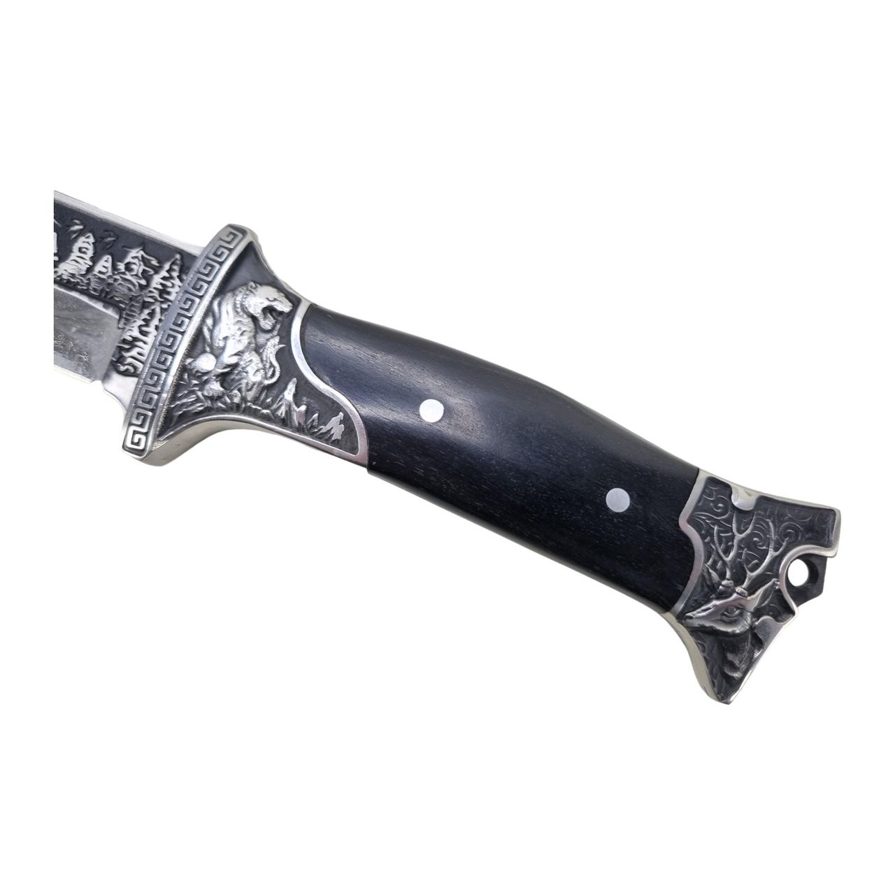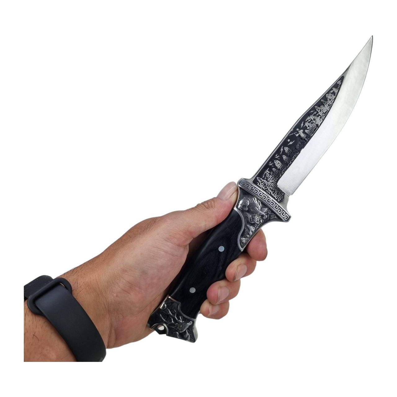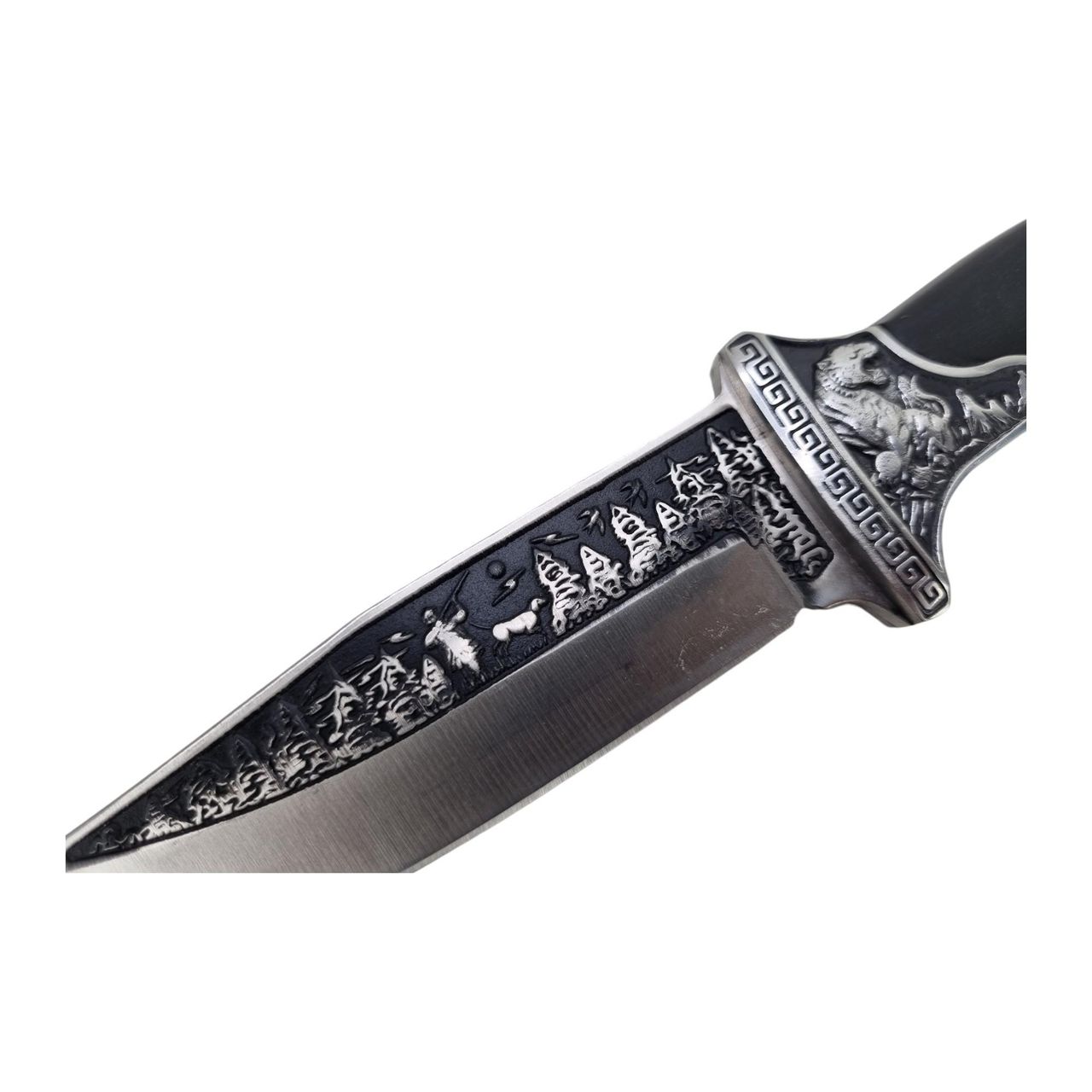 A Faca De Caça Com Desenhos Na Lâmina E Cabo De Cervo É Uma Adição Essencial Para Qualquer Entusiasta Das Atividades Ao Ar Livre. Com Um Punho De Resina E Aço, Essa Faca Oferece Durabilidade E Resistência Para Lidar Com As Tarefas Mais Exigentes.