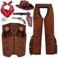 - Conjunto Incrível: Nossa Fantasia Marrom Claro De 8 Peças Inclui 1 Chapéu De Cowboy Marrom, 1 Colete, 1 Bandana Vermelha, 1 Par De Calças, 1 Cinto, 1 Crachá E Outros Adereços De Brinquedo, Fornecendo Tudo O Que Você Precisa Para Criar Um Visual Completo De Caubói.