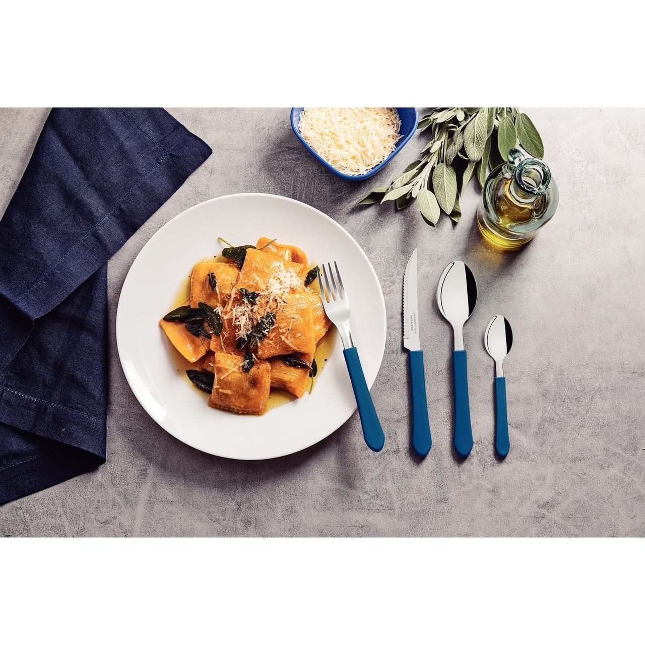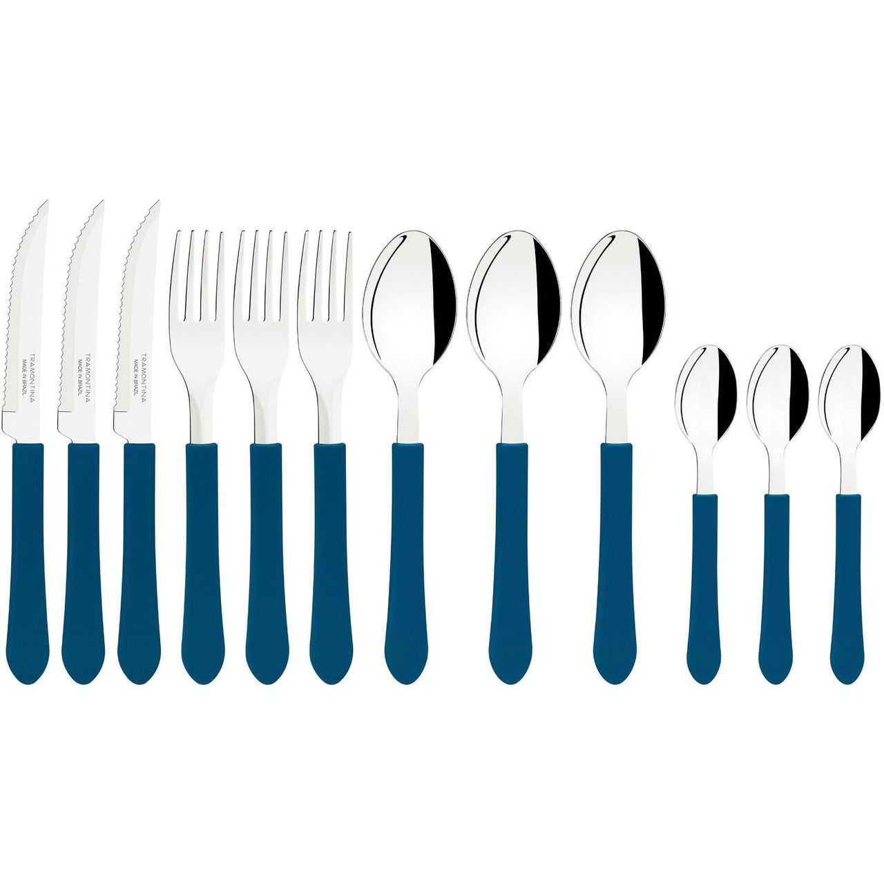 O Conjunto De Talheres Tramontina Leme, Com 12 Peças, É A Escolha Ideal Para Quem Deseja Uma Mesa Sofisticada E Contemporânea. Suas Lâminas De Aço Inoxidável Mantêm As Facas Afiadas Por Mais Tempo, Tornando O Corte Eficiente, Enquanto Os Cabos De Polipropileno Azul Proporcionam Conforto E Estilo.