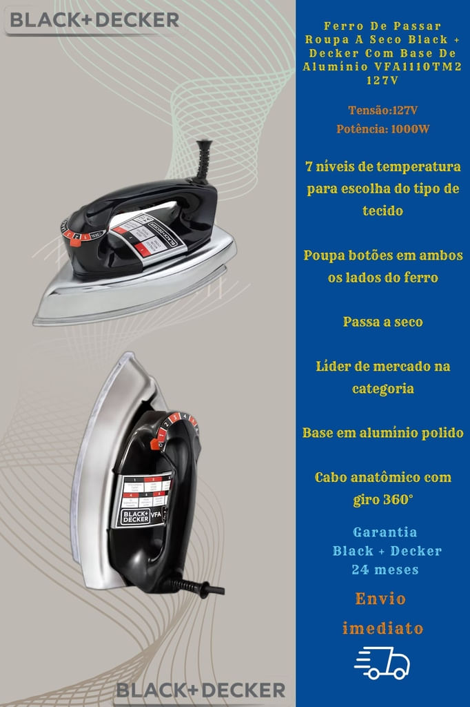 Há Mais De 60 Anos Acompanhando A Família Brasileira, O Tradicional Ferro A Seco Vfa Da Black+decker É Um Clássico No Brasil.