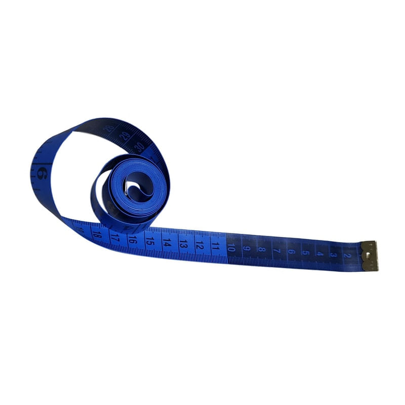 Fita métrica corporal em PVC..Comprimento 1,5 metro, largura 1, 9 cm..Medidas em centímetros com graduação em milímetros e polegadas com graduação em 1/8..Somente na cor azul.