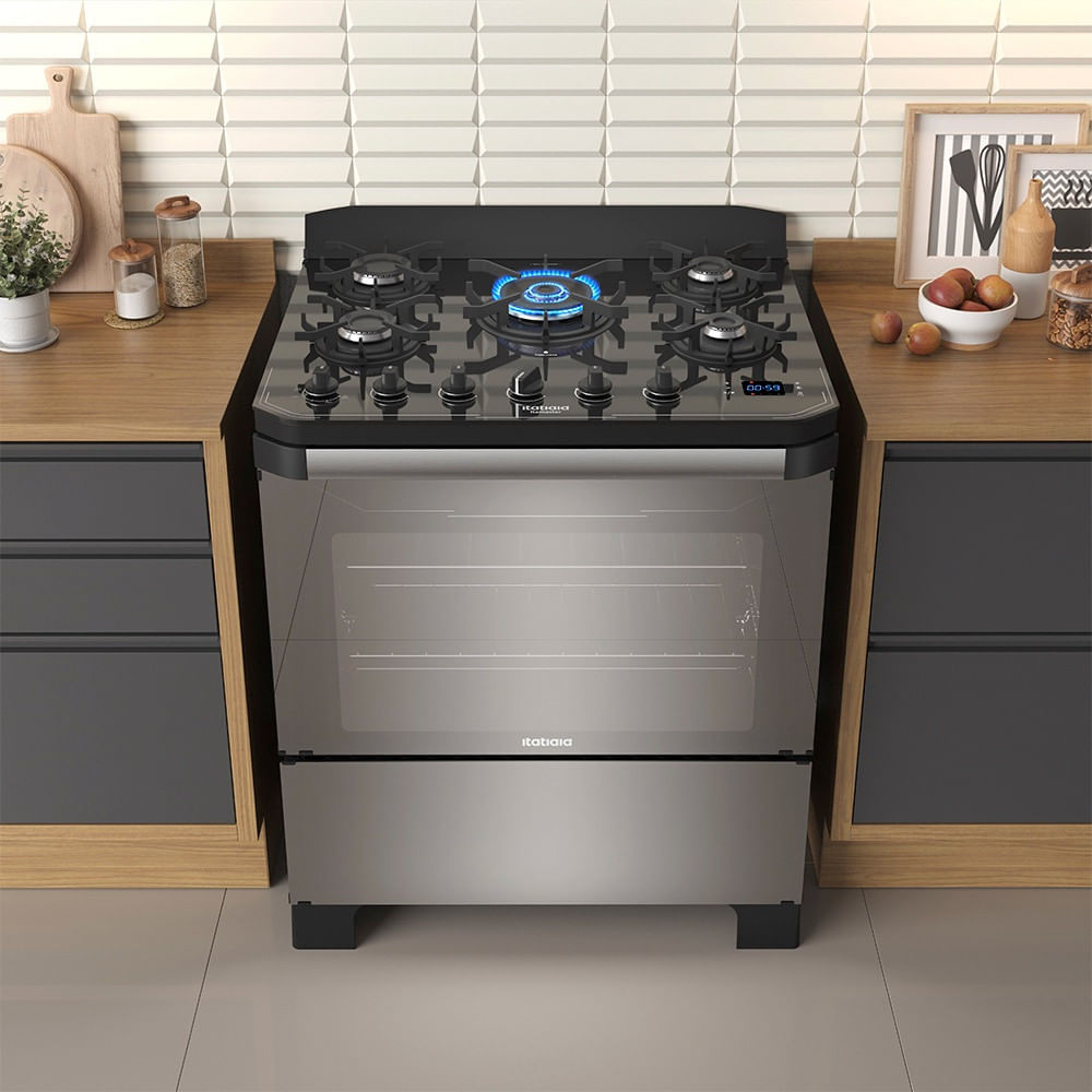 Fogão 5 Bocas Itatiaia Itamaster Reflecta Tripla Chama com Painel Touchscreen e Timer Digital