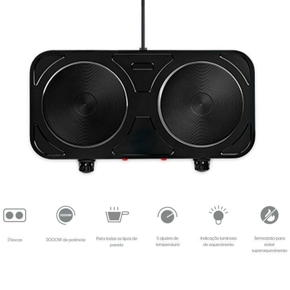 Fogao Eletrico 2 Bocas 2000w 127v Preto Elgin