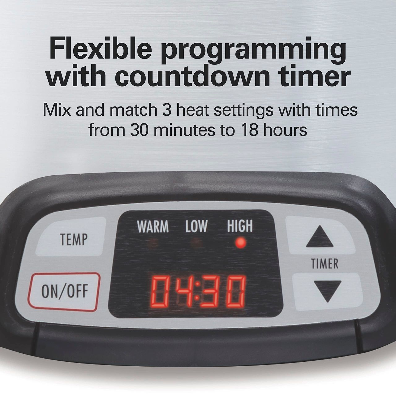 - Programação Flexível Com Temporizador De Contagem Regressiva. Misture E Combine Configurações Quentes, Baixas Ou Altas Com Tempos De Programação Ajustáveis De 30 Minutos A 18 Horas. O Conveniente Temporizador De Contagem Regressiva No Visor Led Mostra Quanto Tempo Até Que A Comida Esteja Pronta.