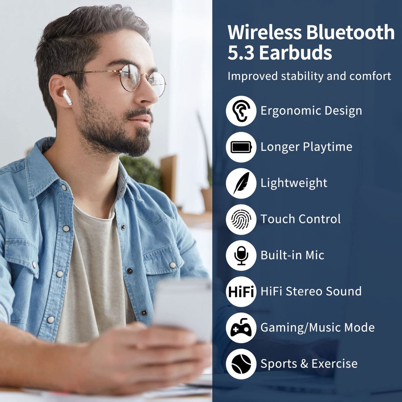 - Fones De Ouvido Bluetooth 5.3 Atualizados: Adotados A Mais Recente Técnica Bluetooth 5.3, Os Fones De Ouvido Fornecem Emparelhamento Mais Rápido, Conexão Mais Estável E Transmissão De Áudio Aprimorada Com Menor Latência.