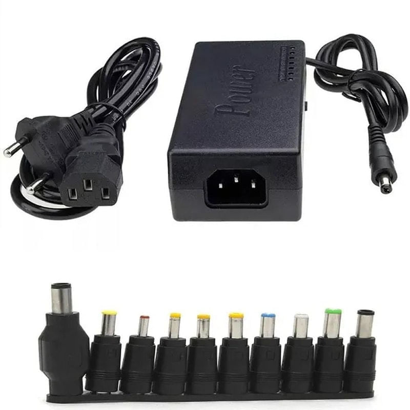 Carregador Universal Portátil notebook 10 conectores BM-AB019..Não deixe de usar o seu computador por falta de fonte de energia. Tenha sempre a mão o Carregador Universal Portátil para Notebook. Este adaptador AC/DC de alta potência é fabricado para alimentar notebooks que requerem entrada DC de 12V a 24V. Além disso, ele acompanha 10 conectores, que encaixam na maioria dos notebooks. Produto de qualidade e durabilidade...Informações Técnicas:.- Este adaptador AC/DC de alta potencia é desenhado para alimentar notebooks que requerem entrada DC de 12V a 24V com potência de até 120W..- Este adaptador possui proteção contra curto circuito e sobrecarga..- Alta eficiência e baixo consumo de energia..- Power LED para monitorar a alimentação..- Encaixa na maioria dos notebooks e computadores laptops..- Voltagem de entrada: AC 110v 240V.- Frequência: 50/60hz.- Corrente de entrada: 1.3A Máximo.- Voltagem de saída: 12v /15v / 16v / 18v / 19v / 20v 4.5A Máximo..- Proteção de sobrecarga: Sim.- Proteção de curto-circuito: Sim.- Potencia de saída: 100 w Máximo Seguintes voltagens: 12v/ 15v /16v / 18v / 19v / 20v / 22v e 24v.- Compatível com a maioria dos notebooks do mercado possui 8 tipos de conectores...Pacote Inclui:.01 Fonte Universal..01 Cabo de força..10 Conectores.