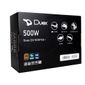 Fonte Duex Dx 500w 80 Plus Bronze - Dx 500fse Uma Fonte De Energia Certificada 80 Plus, Permite Economizar Energia, Mas Não Só Isso. É Também Uma Garantia De Qualidade E De Durabilidade, Pois Os Fabricantes De Fontes De Alimentação São Forçados A Usar Componentes De Boas Qualidades, O Que Garante Uma Maior Vida Útil Em Relação Aos Modelos Não-certificados. O Que Significa Também Uma Geração De Calor Muito Baixa, O Que Ajuda A Manter O Alto Rendimento. O Selo 80 Plus Garante Que As Fontes Entreguem Um Valor Mínimo De Energia Em Diferentes Níveis De Estresse. Especificações: Marca Duex Modelo Dx 500fse Potência 500w Tipo Atx12v Pfc Ativo Entrada Frequência: 50/60 Hz Corrente: 5 Amps Voltagem: 115-240 Volts (chaveada) Eficiência 80 Plus Bronze Conectores 1 X Alimentação 20 + 4 Pinos 1 X Auxiliar Atx 4 Pinos 3 X Conectores Sata 2 X Conectores Ide 1 X Pci Express 6 + 2 Pinos Dimensões Cooler: 12cm Fonte: 14 X 15 X 8,5cm Imagens De Caráter Ilustrativo Informações Divulgadas De Acordo Com O Manual Do Fabricante Produto Novo Na Caixa, Lacrado Com Nf E Garantia Do Fabricante De 1 Ano. Em Caso De Duvidas Sobre Informações Técnicas, Utilização, Limitações E Manuseio Do Produto, Verifique O Manual Do Fabricante. Ean: 6015034198184 Nac010652