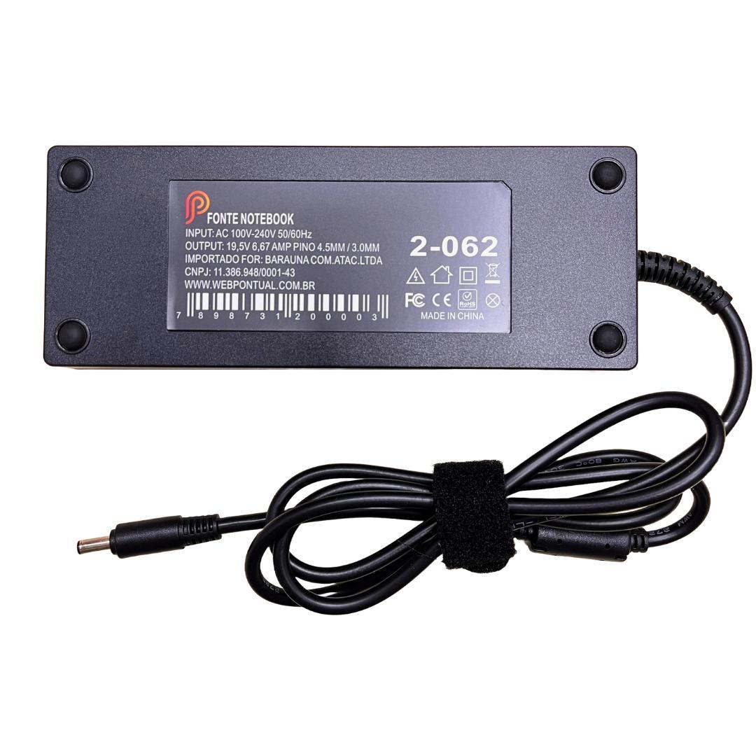 Fonte Notebook 19.5v 6.67a 4.5x3.0 Compatível Dell 2-062 -